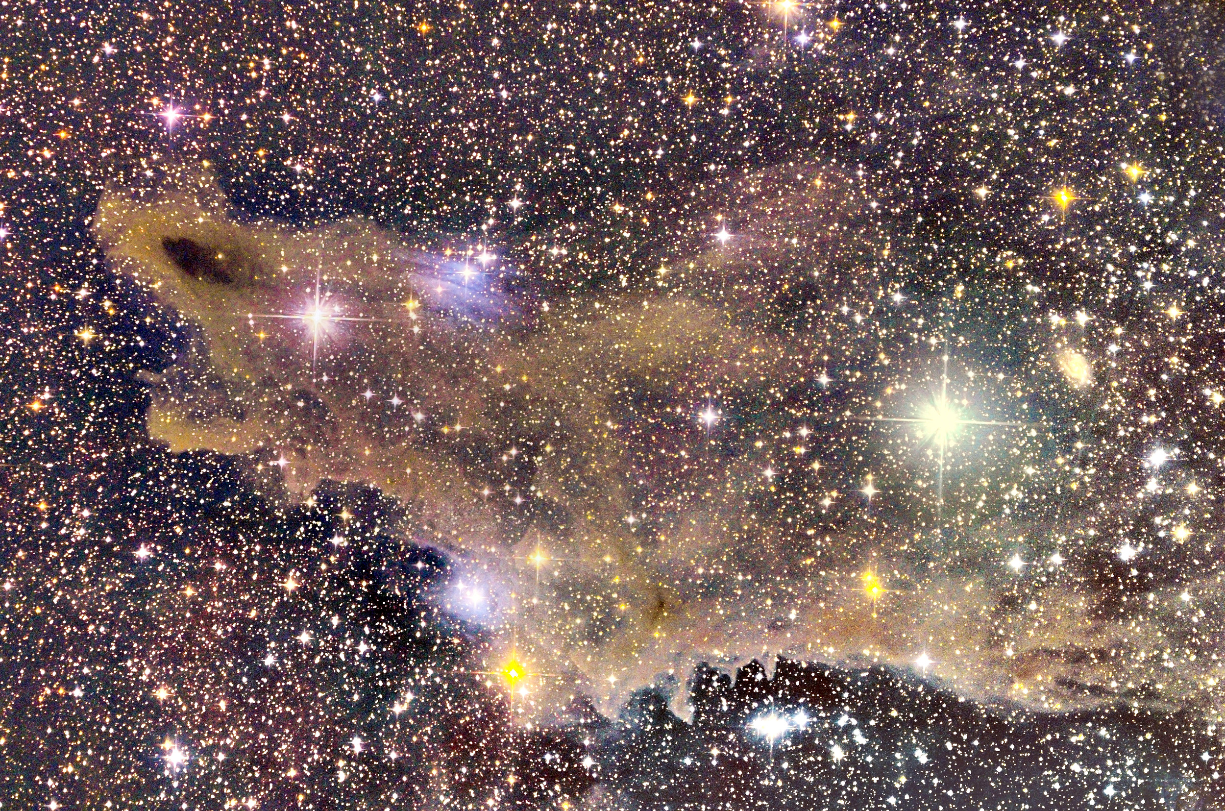 ![]() Shark Nebula (LDN 1235) in Cepheus shot with Askar 103 APO telescope at f/4 file: SharkAskarF4-450minColEND16July24A_HA198min&LUM59minFIN-1acrr4sm.jpg click here for enlargement Photographic Data Date: July 16 2024 telescope: Askar 103 APO triplet refractor reduced to f/4 FL= 412 mm cropped photo