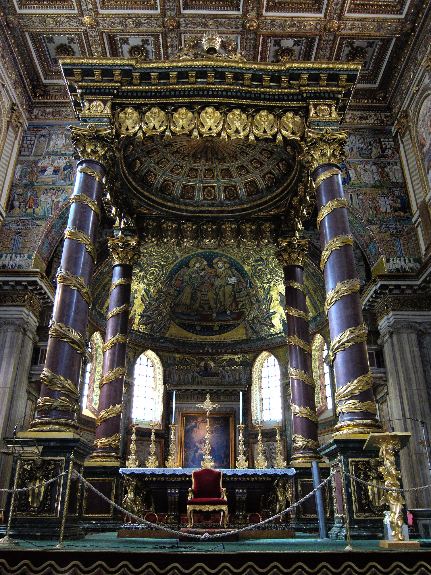 Baldacchino over the papal altar in Santa Maria Maggiore, Rome (mouse click twice on the photo for an enlargement)