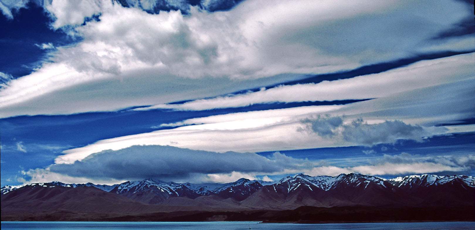 Lenticular clouds over Lake Pukaki on New Zealand's South Island