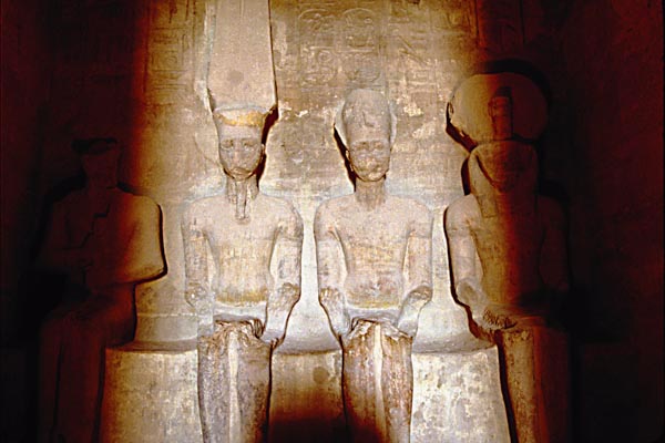 four seated figures: Ramses II
