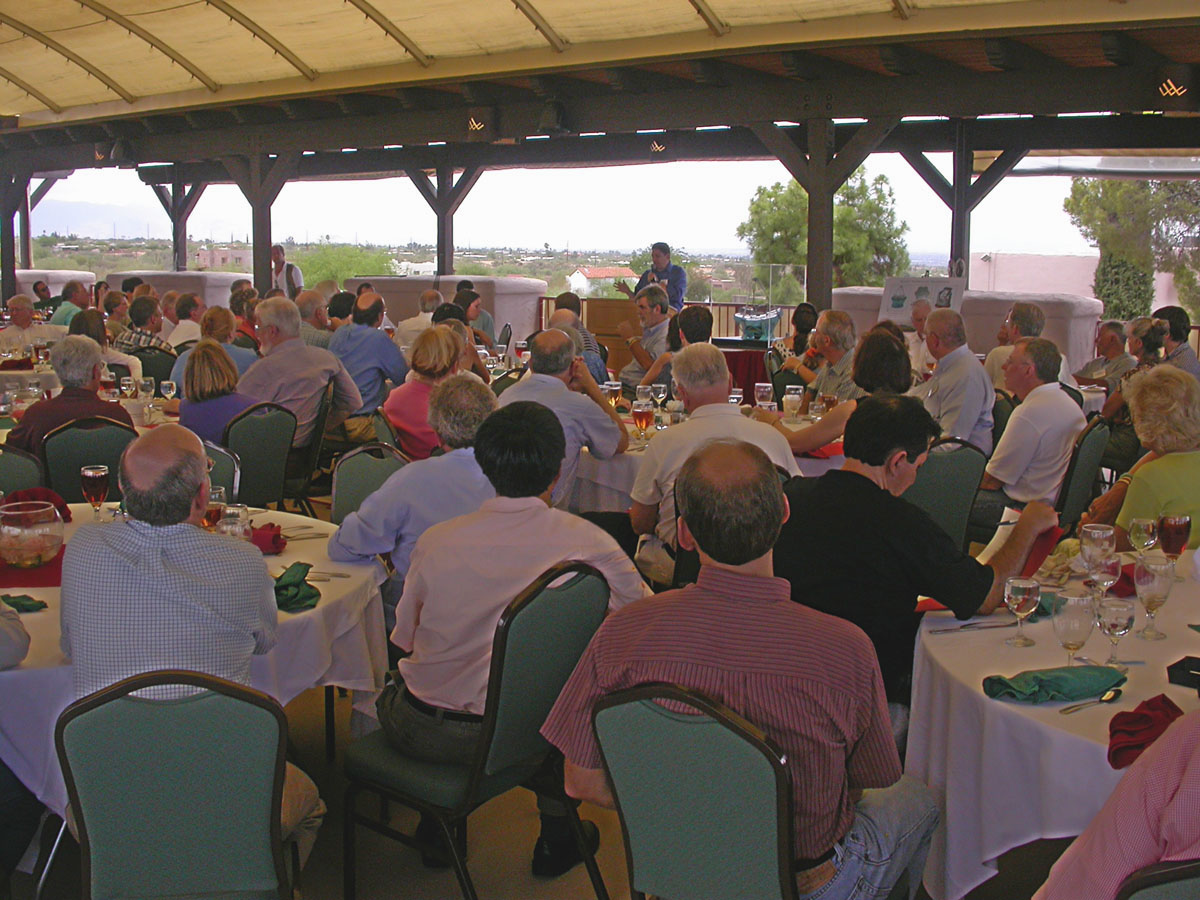 July 23, 2005 luncheon at the Westward Look Resort near Tucson, Arizona kicked-off the ceremonies for a celebration of the casting of first of seven 8.4 mirrors for the Giant Magellan Telescope (GMT). The attendees were staff and guests from the 8 contributing institutions: Carnegie Institution (parent), Harvard University, Smithsonian Astrophysical Observatory, University of Arizona, University of Michigan, MIT, University of Texas and Texas A&M. Writers from Science, Nature, Scientific American and the New York Times also attended. |