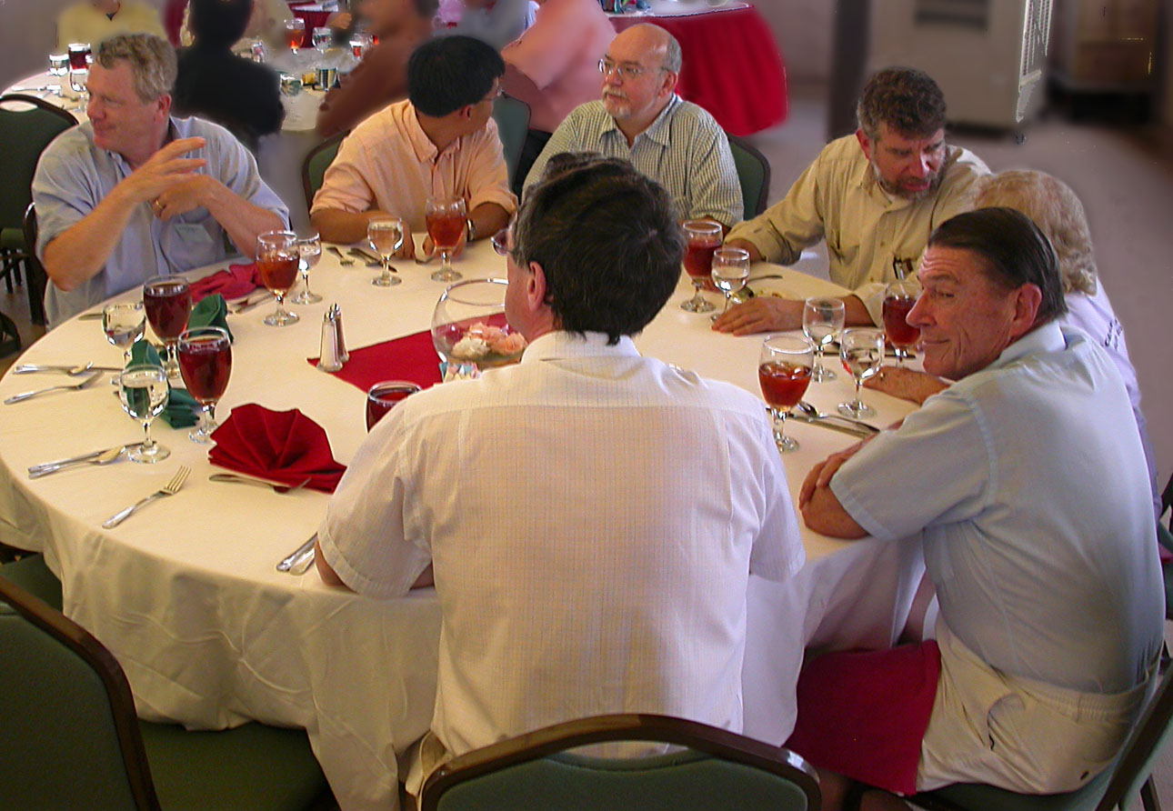 Several prominent astronomers from Harvard and MIT dine at the Saturday luncheon for the GMT casting meeting at the Westward Look Resort in Tucson, Arizona