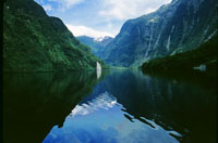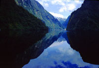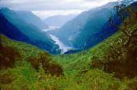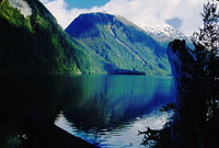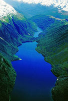 the Southern Alps. Fjordland's serrated coastline and deep branching lakes