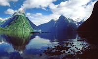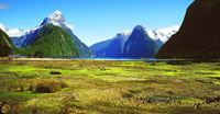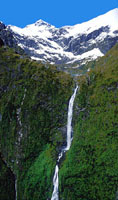 and Stirling) and deep blue lakes. Fiordland has very high precipitation