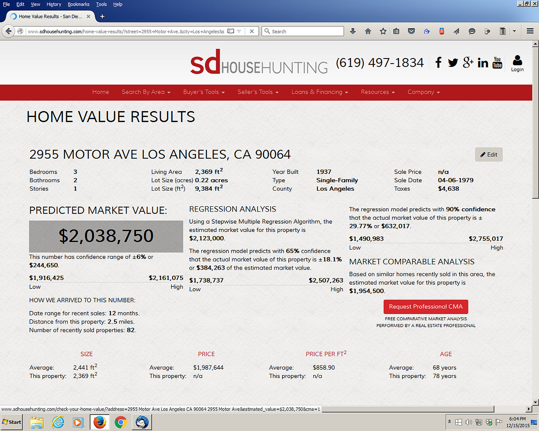SD HouseHunting estimate on 2955 Motor Avenue, Los Angeles, CA 90064 in December,