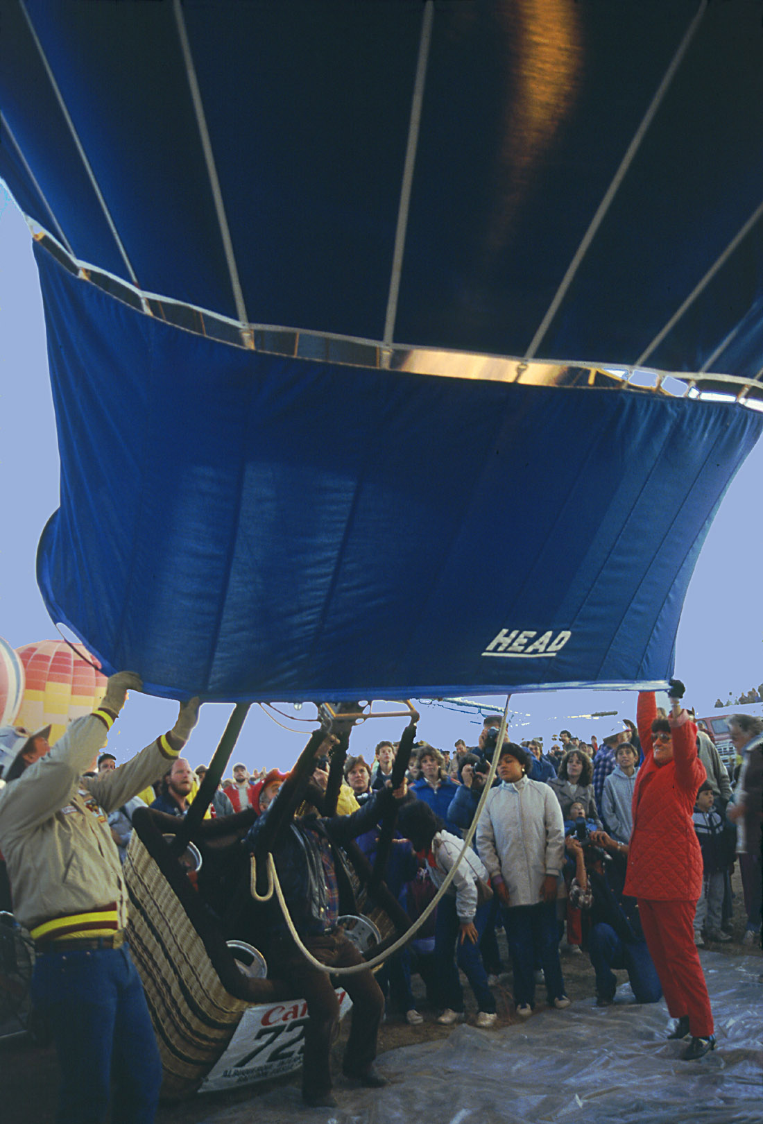 Propane burners heat the air in the balloon, inflating it, so it can achieve an upright attitude prior to launch