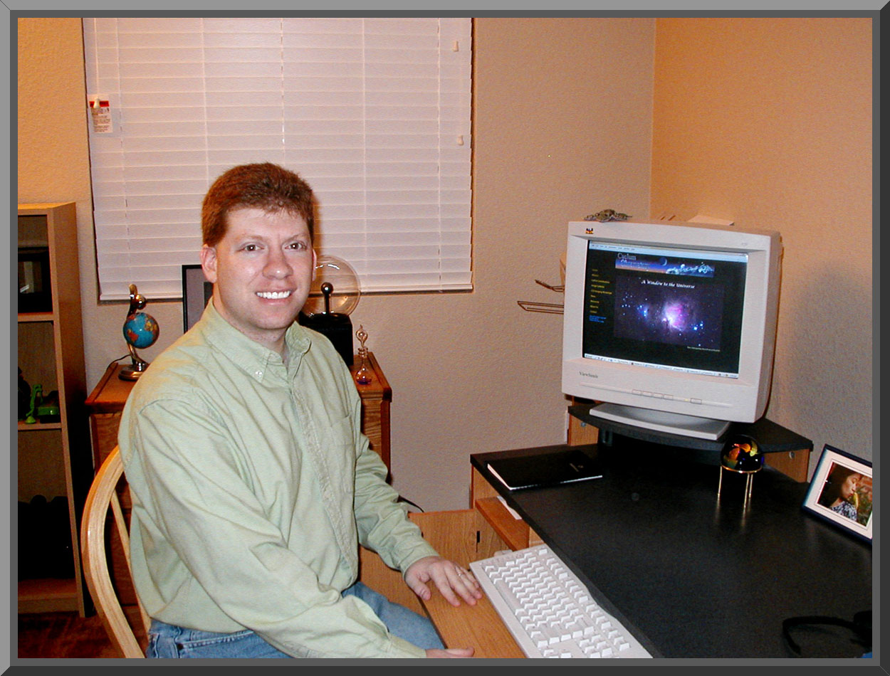 As my interest grew, my parents took note and bought a toy-store refractor as my first telescope. As is often the case this kind of gift tends to act as a litmus test for a child's burgeoning interest. I obviously survived the frustrations of this telescope and continued to express my excitement about astronomy. When I was around 9 years old, my parents researched a bit more and discovered the company Edmund Scientific from which I would request many more "toys" over the years. From ES they purchased an 4.5in Astroscan (rich field reflector) and a small number of eyepieces. This was a wonderful first telescope from which I saw the rings of Saturn, the belts of Jupiter, star clusters, nebulae, comets (Halley), and even a few bright galaxies. A couple of years later they surprised me by getting an 8" Celestron telescope with a good selection of accessories. I would spend many cold hours painstakingly setting up this equipment on my driveway and learning the night sky. It was also at this time that I made my first attempts at astrophotography using film. The Astroscan and 8-inch Celestron telescopes are the only ones I own to this day. In school I qualified for and participated in special programs that emphasized science. It was at this time that I became involved in the activities of Fernbank Science Center in Atlanta which has a very large planetarium and a 36in telescope from which public programs are offered. Unlike my lonely driveway sessions, I found that I enjoyed sharing the night sky with others and I found that volunteering at Fernbank was a lot of fun. This marks the beginnings of my work in public outreach. After graduating from high school, I decided to attend the University of Arizona and continue studying astronomy (and physics). As a freshman I volunteered at Flandrau Planetarium and ran their 16in telescope for the public a couple of nights each week. Later I was hired to be a telescope operator for the 20in campus telescope at Steward Observatory. At this observatory 100 level students (non-majors) would sign up to observe at the telescope. It was our job to point at objects and explain what they were looking at; and the students, not always the most motivated, would sketch their views as part of the assignment. During this time I began to hone my ability to explain astronomical concepts at a variety of knowledge levels. I would eventually become the lead telescope operator at the observatory and administer special programs for the astronomy department. One professor noted that I, and a few of my friends, were especially interested in using the telescope. For many months we had tried to capture images of deep sky objects using an ST4 CCD camera. I believe my first "successful" image with a CCD camera was of M57- even though it didn't look like much, I was incredibly impressed! The professor decided to purchase an ST6 camera and so began my imaging career. Also during this time I was Vice President of the University Astronomy Club and President of the Table Tennis Club (to this day I am a competitive and rated player). Eventually I became President of the Astronomy club and (with Jason Harris) refurbished an old observatory on Tumamoc Hill in the middle of Tucson. We installed a 16in newtonian reflector and finally the club had an official telescope which survives to this day! While in college I also received the departmental teaching award and eventually graduated with a B.S. in Astronomy and Physics. I decided not to pursue the PhD road and wound up working at a hardware store for 8 months after I graduated. After work I would drive out to Benson, Arizona and work with guests of Skywatcher's Inn for Dr. Ed Vega. His 20in Maksutov telescope was a wonderful instrument that I never tired of using. In November of 1996 I found out that Kitt Peak National Observatory was looking for someone to help run a new public observing program. I interviewed for the job and was hired on the spot. :) For the next nine years I would develop and craft the nightly observing programs (NOP) and create the successful ideology and proven approach to outreach that they enjoy today. While in this forum I am most well-known for my work in CCD imagery, my other less known forte is in the public speaking I did during that time.