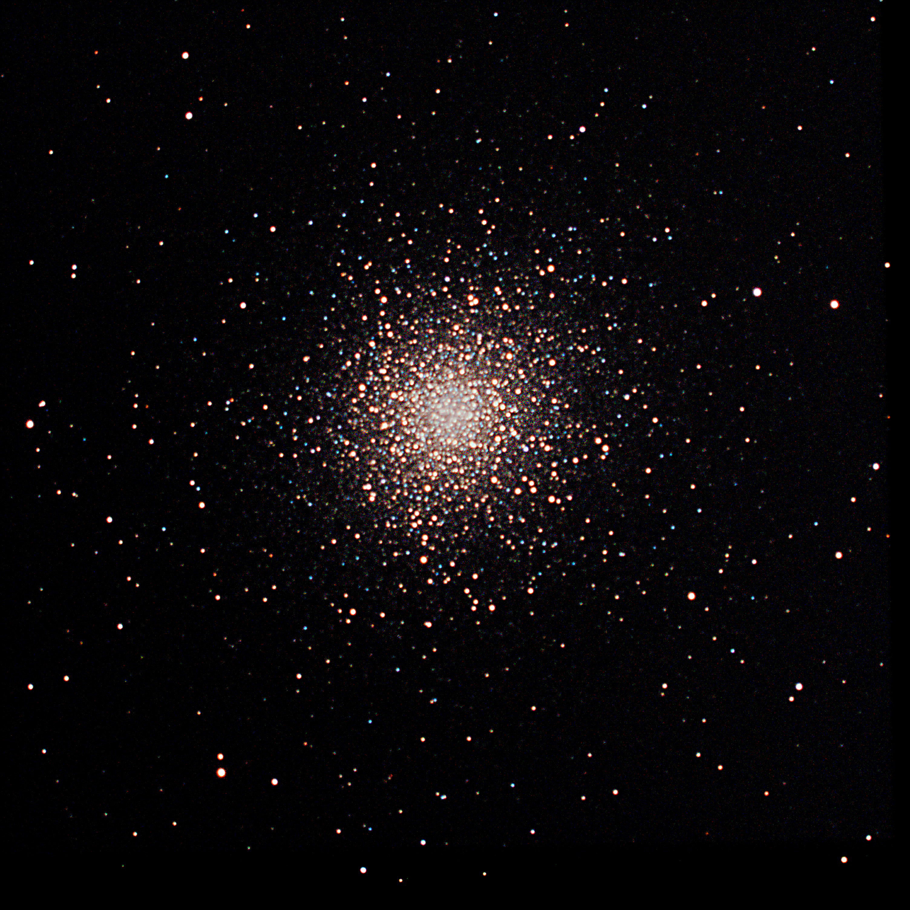 Photographic data Mount guide settings: ZWO AM5 harmonic mount used with 60 mm f/4 (FL= 240 mm) SVBony guidescope. I got good, but variable guiding of total: 0.55” to 1.15”. Average total RMS guiding: 0.85” on a partly cloudy night of 4-14-2023 using: Calibrate step: 6,000 ms Dec duration: 4,000 ms RA duration: 3,000 ms Exposure time for guide scope: 1 (one) second Bin 1 for guide camera (Bin 2 turned off) Gain: 325 Aggression for both RA and Dec: 50% Auto Restore Calibration: on For the 60 mm f/4 (fl=240 mm) guide scope with ZWO ASI662MC guide camera use a gain of about 250 - 335 Stars look round for 60 second exposures of M13 and 180 second exposure of galaxy and test stars with average total guiding about 0.85” (range of total: 0.55 to 1.10" RMS) on a partly cloudy night . Telescope: Celestron EdgeHD 9.25-inch SCT at f/7 (FL=1,650 mm) with SVBony 60 mm f/4 guidescope (FL=240 mm) . Cameras: Main imaging: ZWO ASI533MC-Pro cooled color camera Guide camera: ZWO ASI662MC color planetary camera (2.97 micron pixels) . Exposure: 60 sec X 40 lights with calibration frames . Filter: Optolong L-Pro |