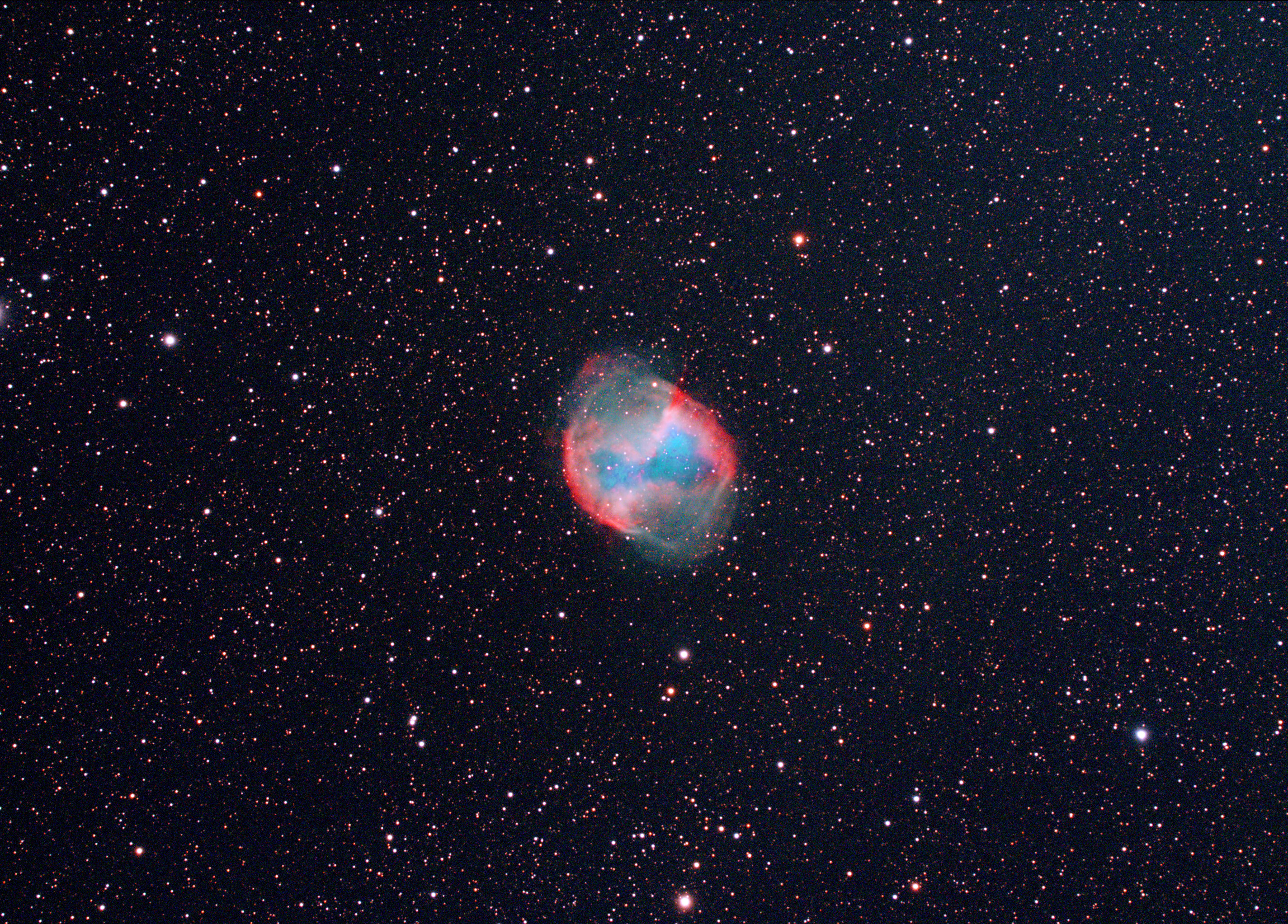 ![]() M27 "Dumbbell Nebula" with Optolong L-Pro filter on 9-23-2023 file: M27-120sX51P2L-ProCel925f7ASI533-9232023b2.jpg