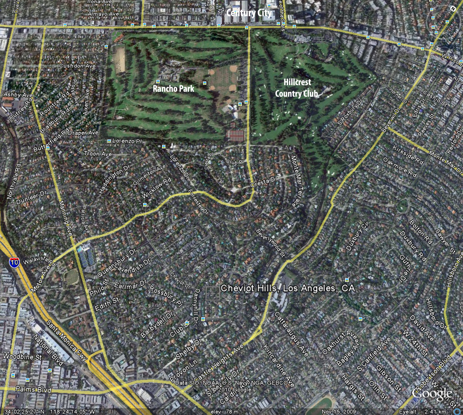 Google Map Aerial View of Cheviot Hills 90064 (North is up) . Cheviot Hills Homes .