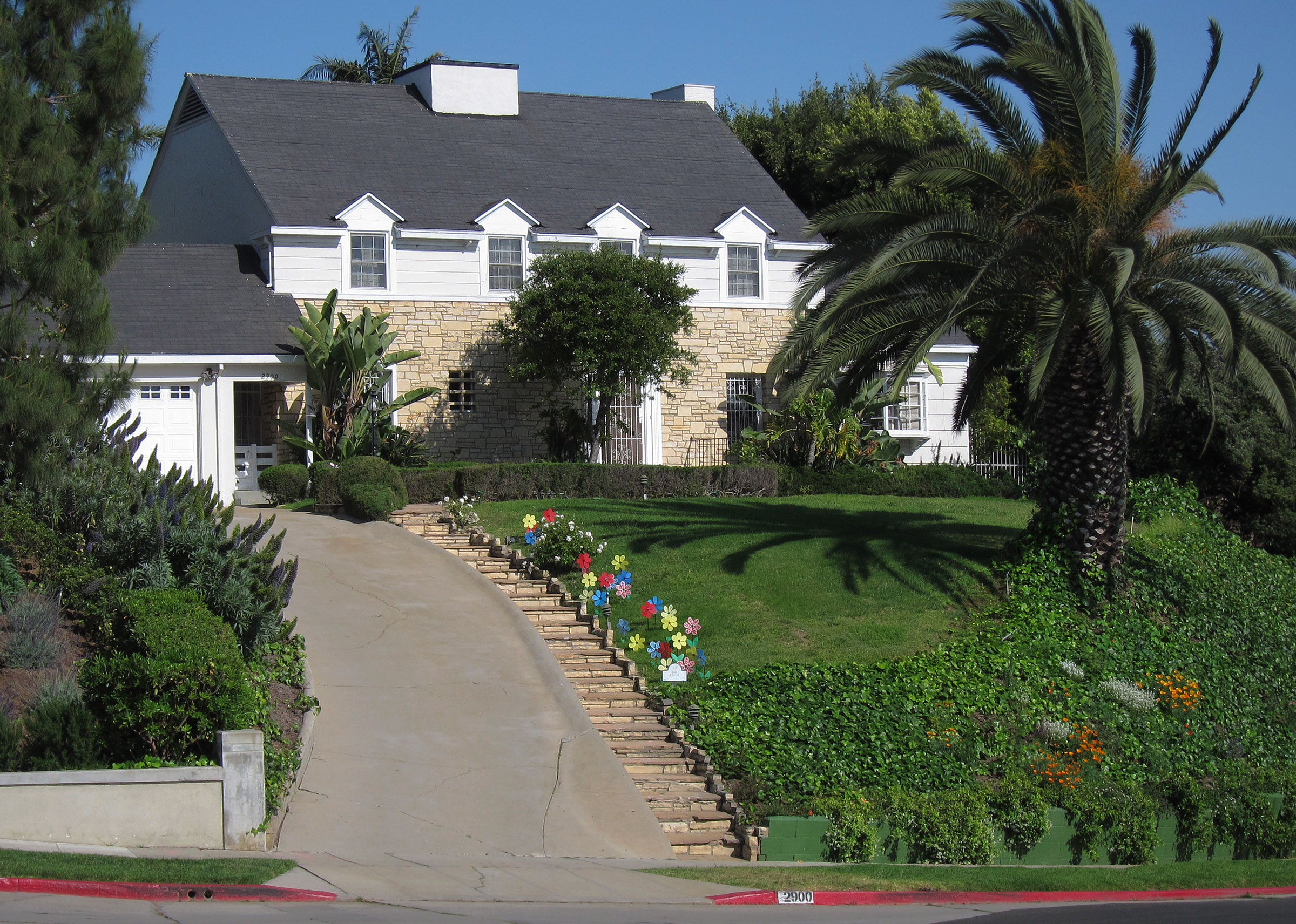 Cheviot Hills house on Club Drive in morning light, 90064 .