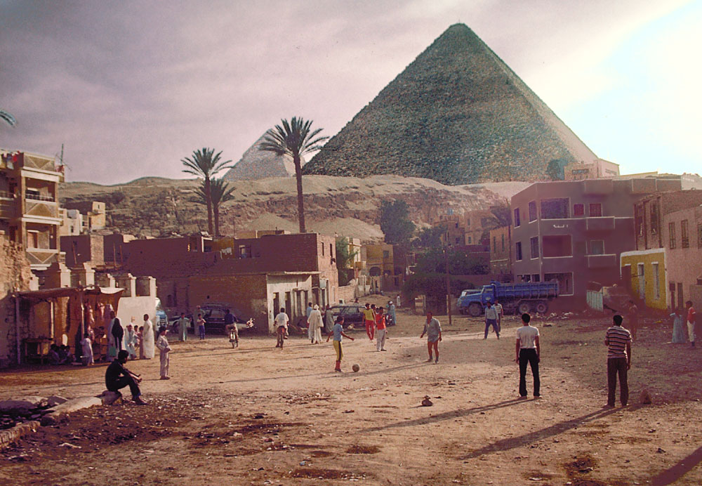 Pyramid of Cheops. Just to its right is the museum containing the oldest