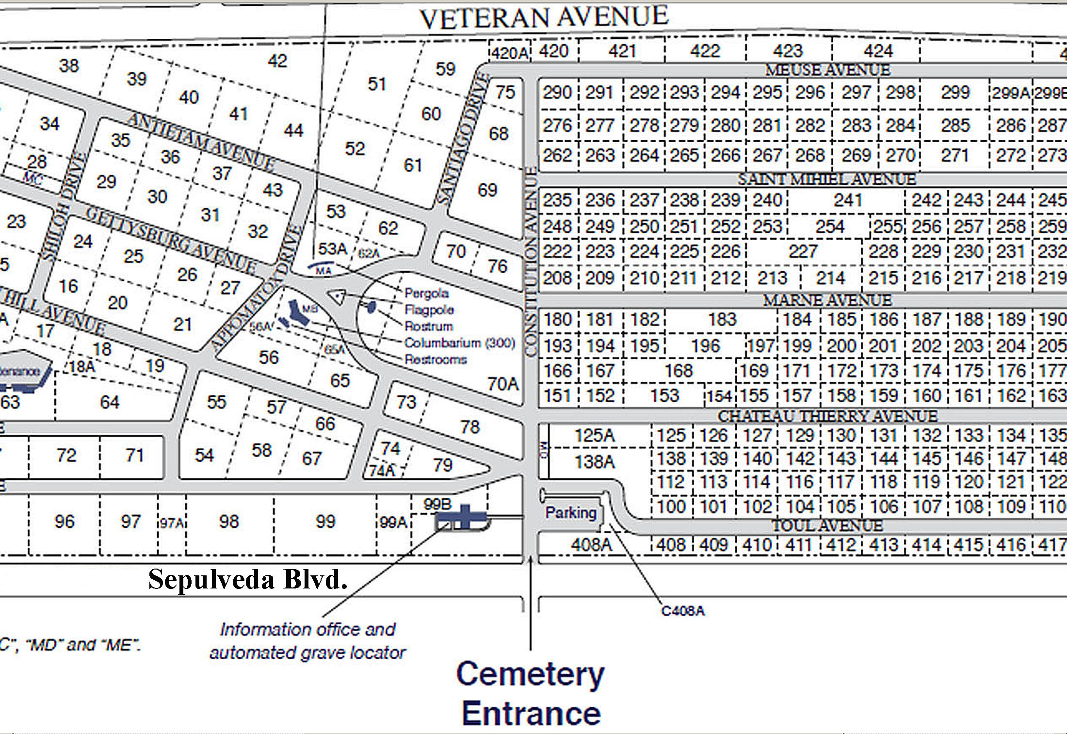 Section map of Los Angeles National Cemetery