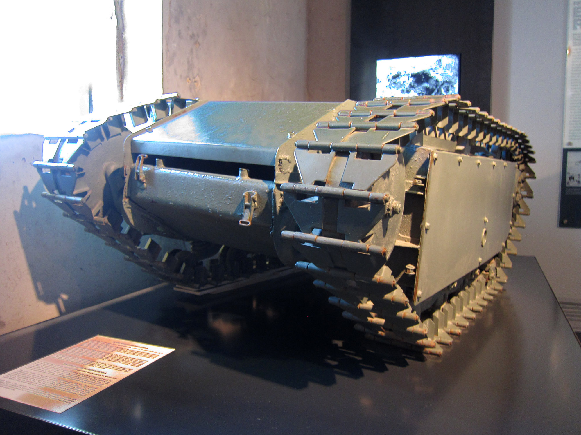 The Goliath tracked mine - complete German name: Leichter Ladungsträger Goliath - was a remote controlled German-engineered demolition vehicle, also known as the beetle tank to Allies. Employed by the Wehrmacht during World War II, this caterpillar-tracked vehicle was approximately 4 feet (1.2 m) long, 2 feet (0.61 m) wide, and 1 foot (0.30 m) tall. It carried 75–100 kilograms (170–220 lb) of high explosives and was intended to be used for multiple purposes, such as destroying tanks, disrupting dense infantry formations, and demolition of buildings and bridges.