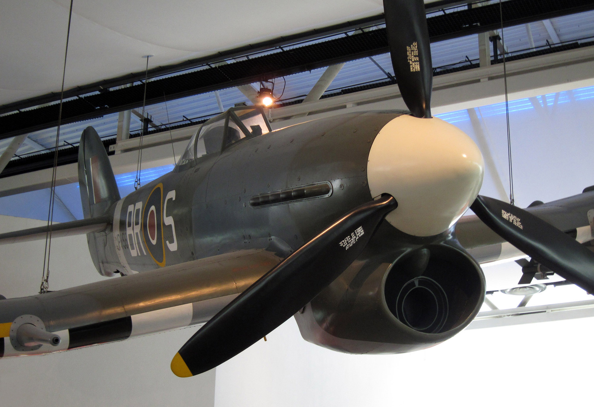 British WWII 1941 Hawker Typhoon fighter in main hall of Caen Museum For Peace, Normandy France