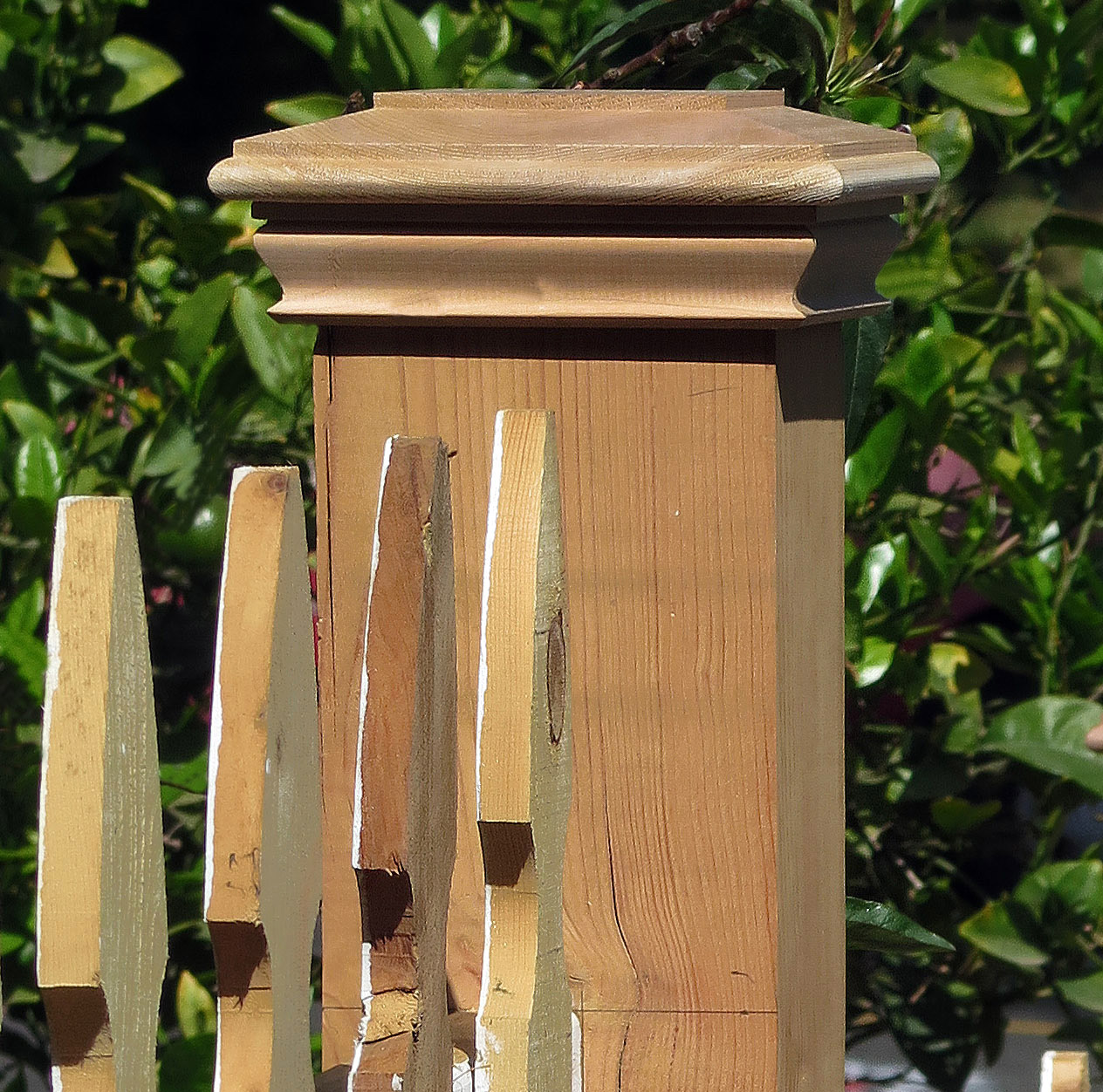 ![]() Decorative crown to fence post on June 1, 2018 .  |