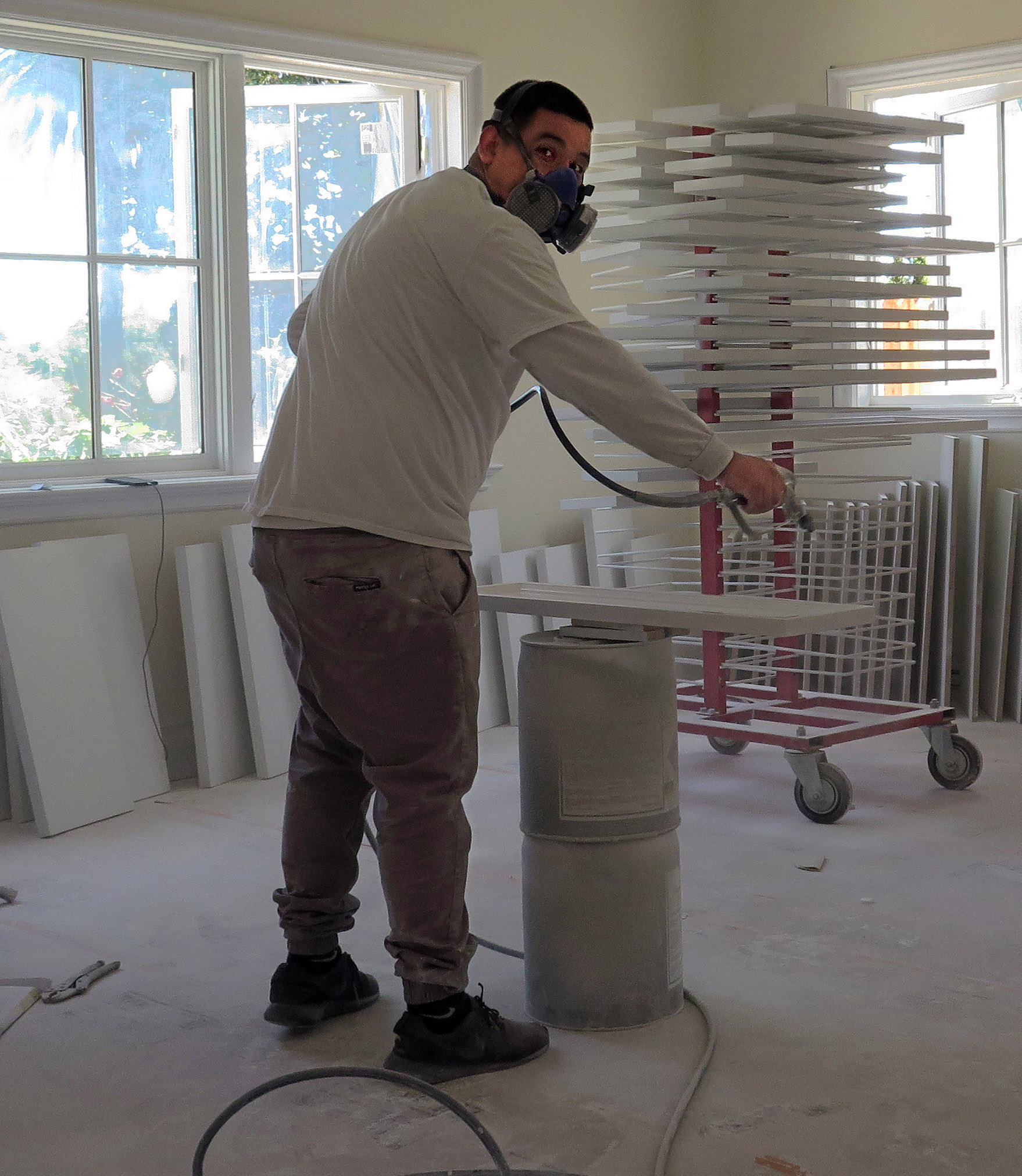 ![]() Spraying with white lacquer on June 2, 2018 .  |