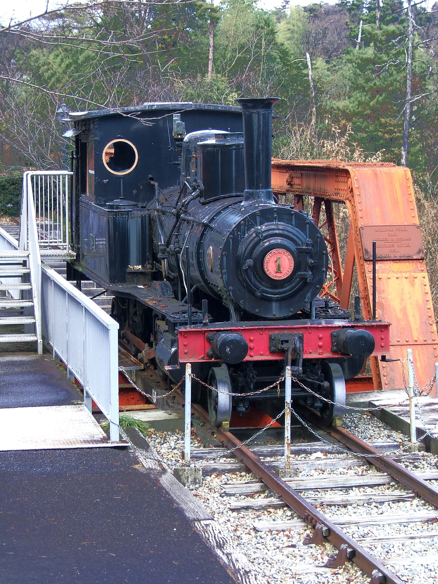 Bisai Railway No.1 Steam Locomotive at Meiji Mura theme park, Japan Manufactured in 1897 in the United States, this was the first steam locomotive of the Bisai Railway, in service between Yatomi and Shin-Ichinomiya in Aichi Prefecture.