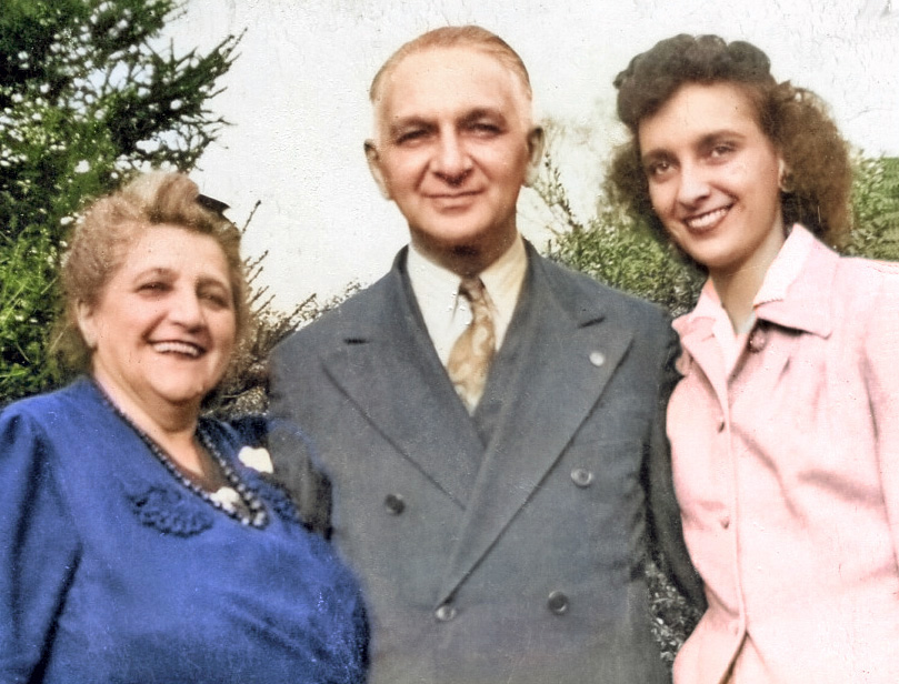 ![]() Mathilde, Solomon and daughter Bernice Lihner, circa 1940s Colorized by Michael A. Stecker file: Lihner-MatSolBern-fromMS31b-colorize4b.jpg |