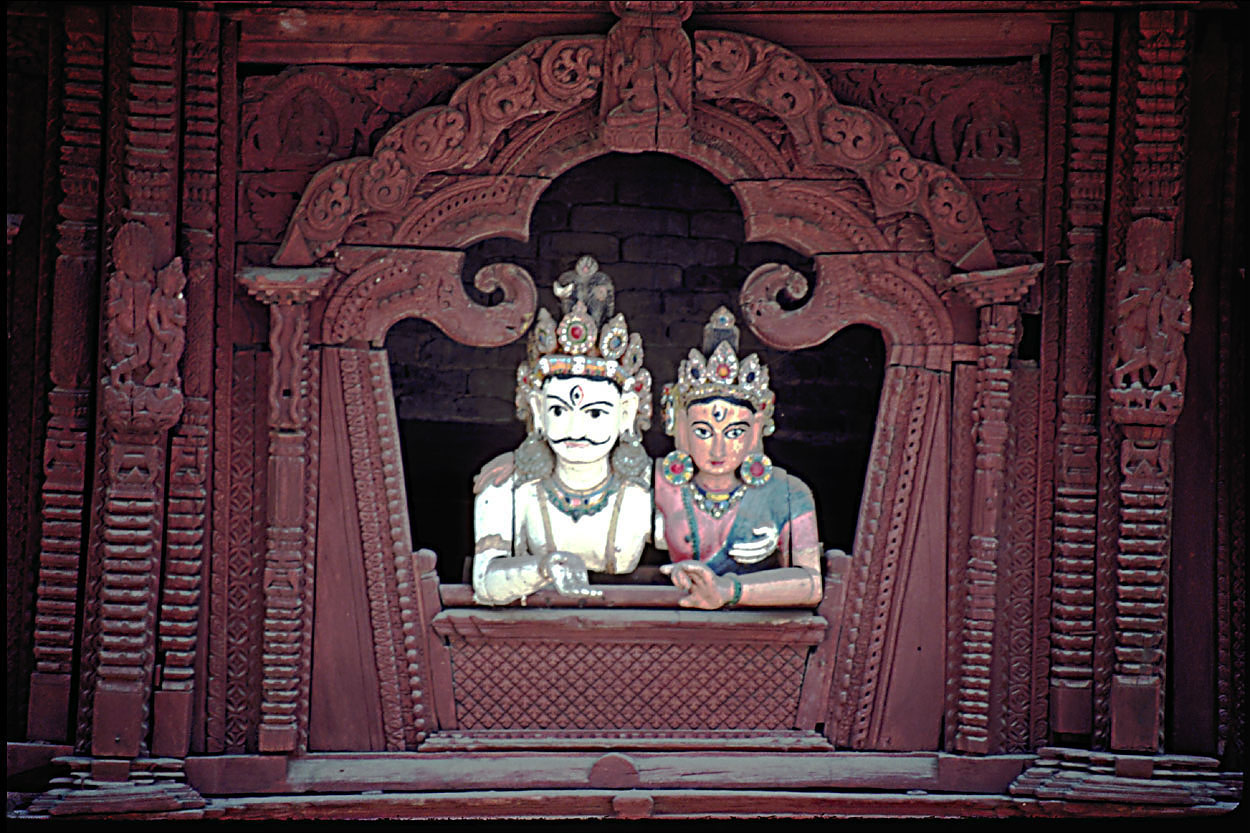 climb the stairs, the ornate Newari wood carvings on the roof struts