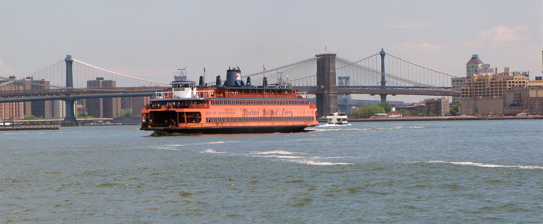 Staten Island Ferry with Brooklyn, Manhattan and Williamsburg bridges in the background: May 12, 2009