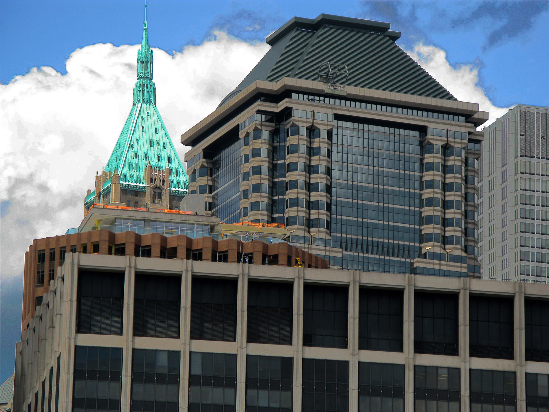 left with green roof: Trump Building at 40 Wall St. center-right with black roof: J.P. Morgan Bank Building at 60 Wall St. return to main Manhattan Boat Cruise page
