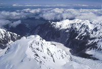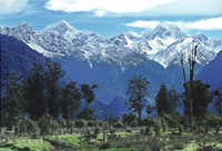 Southern Alps are found. Mt. Cook at 3754 meters (12,313feet) is the