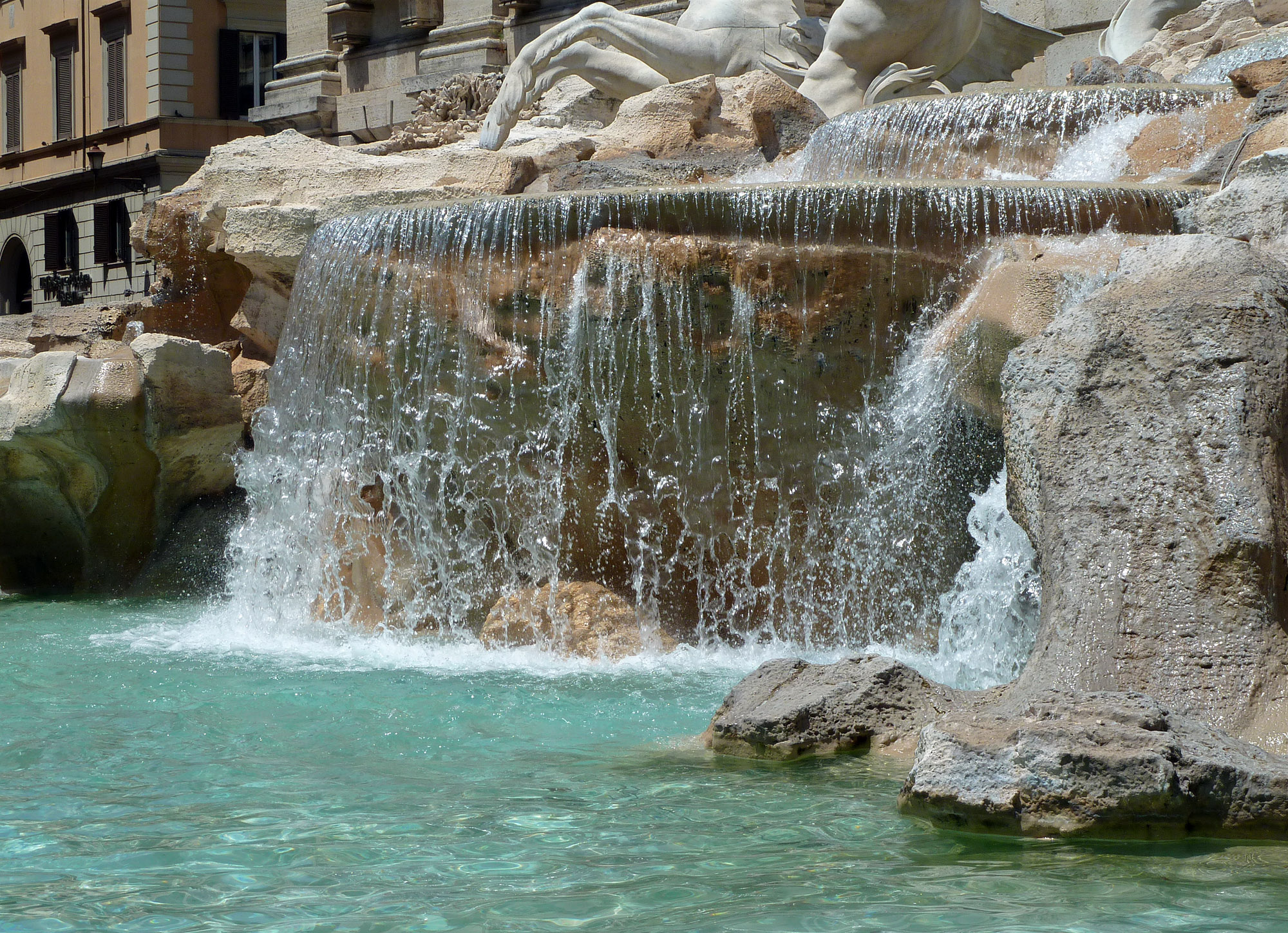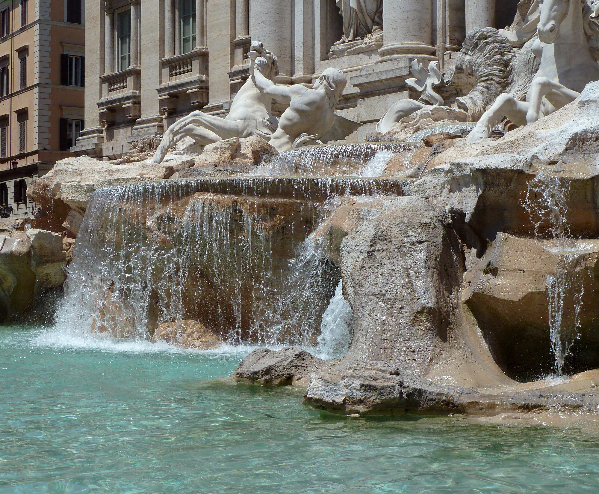Trevi Fountain central cascade Standing 85 feet high and 65 feet wide, it is the largest Baroque fountain in the city and one of the most famous fountains in the world. (mouse click on photo twice for an enlargement)