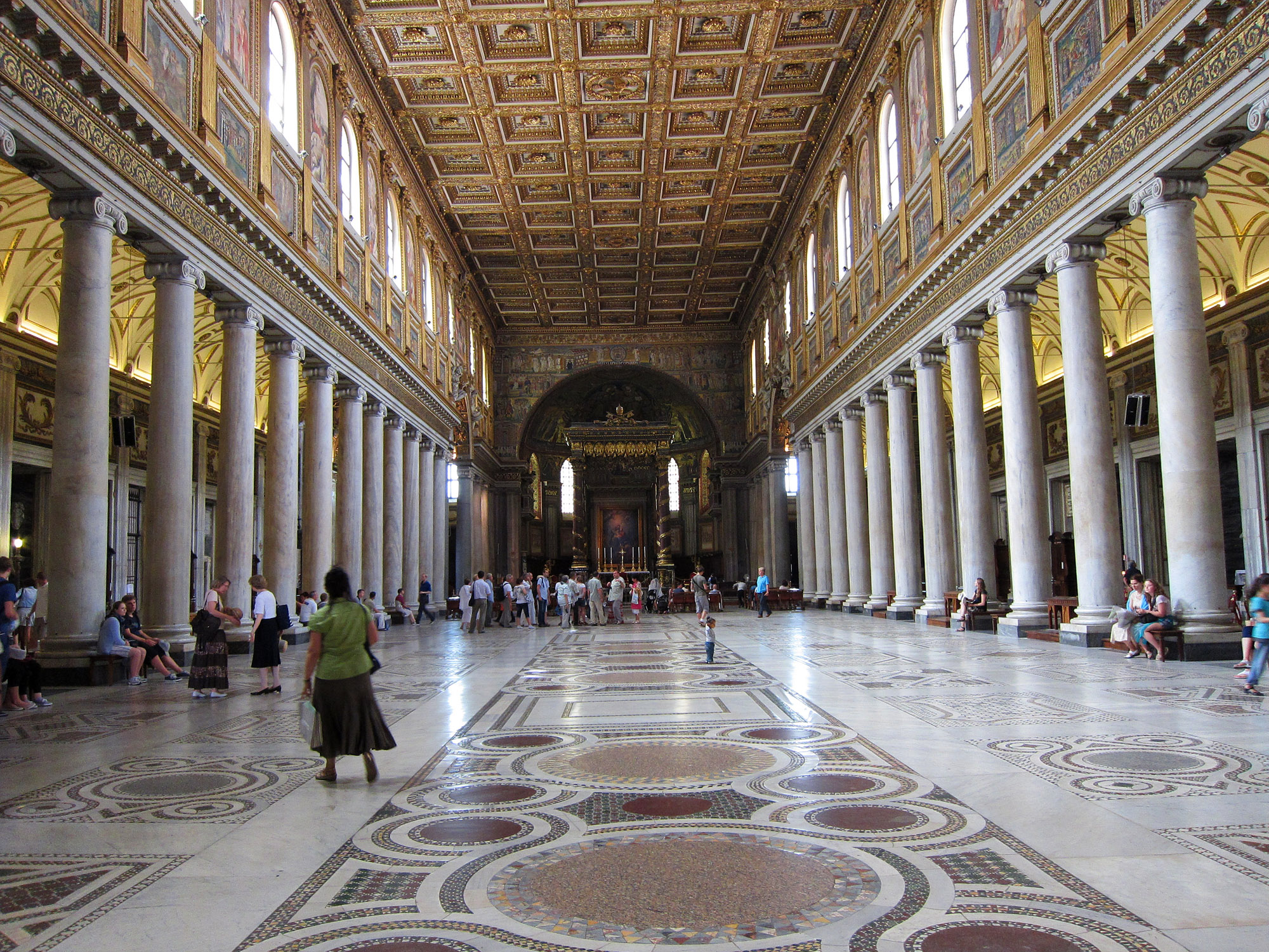 two rows of Ionian columns, a wonderful Cosmati marble pavement, beautiful