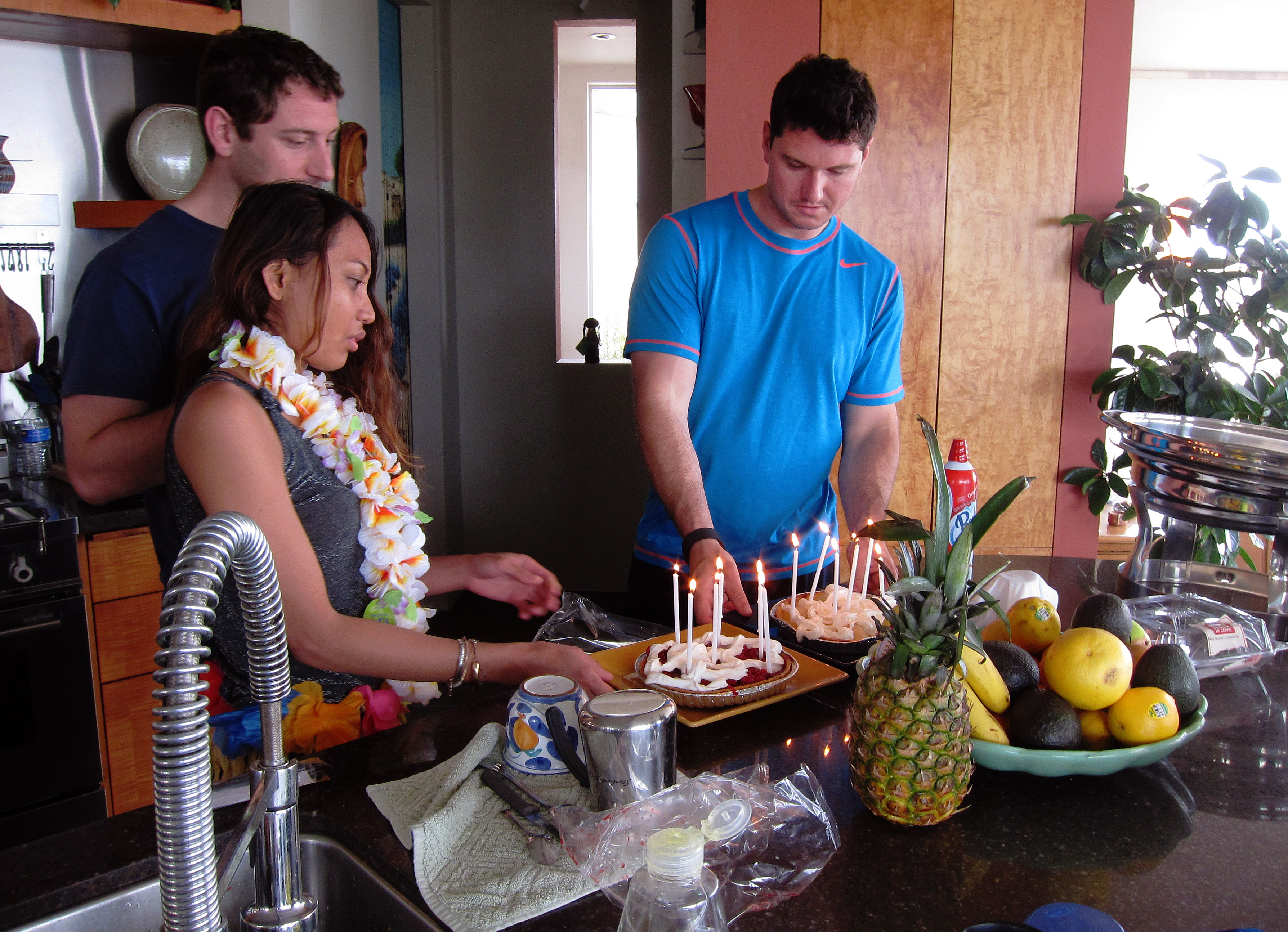 Trader Joe's pear and raspberry tarts with wipped cream make good birthday deserts -- May 24, 2015