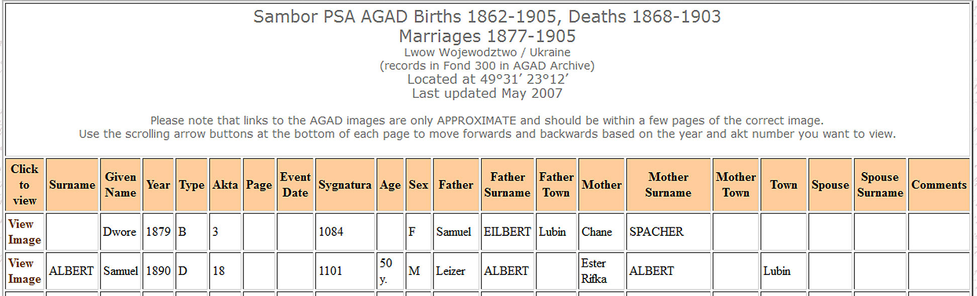 Sambor, Galacia, Austria was the home of Dora Albert, Sara/Sadie Albert,