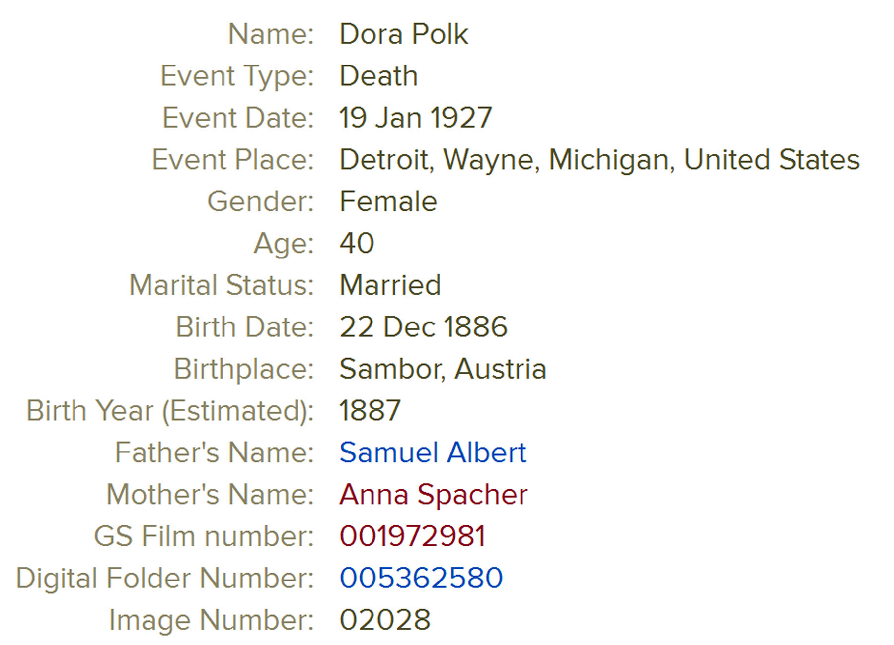 Born: Dora (Dvore) Albert circa 1886 (December 22) in Sambor Galicia (Austro-Hungarian Empire)