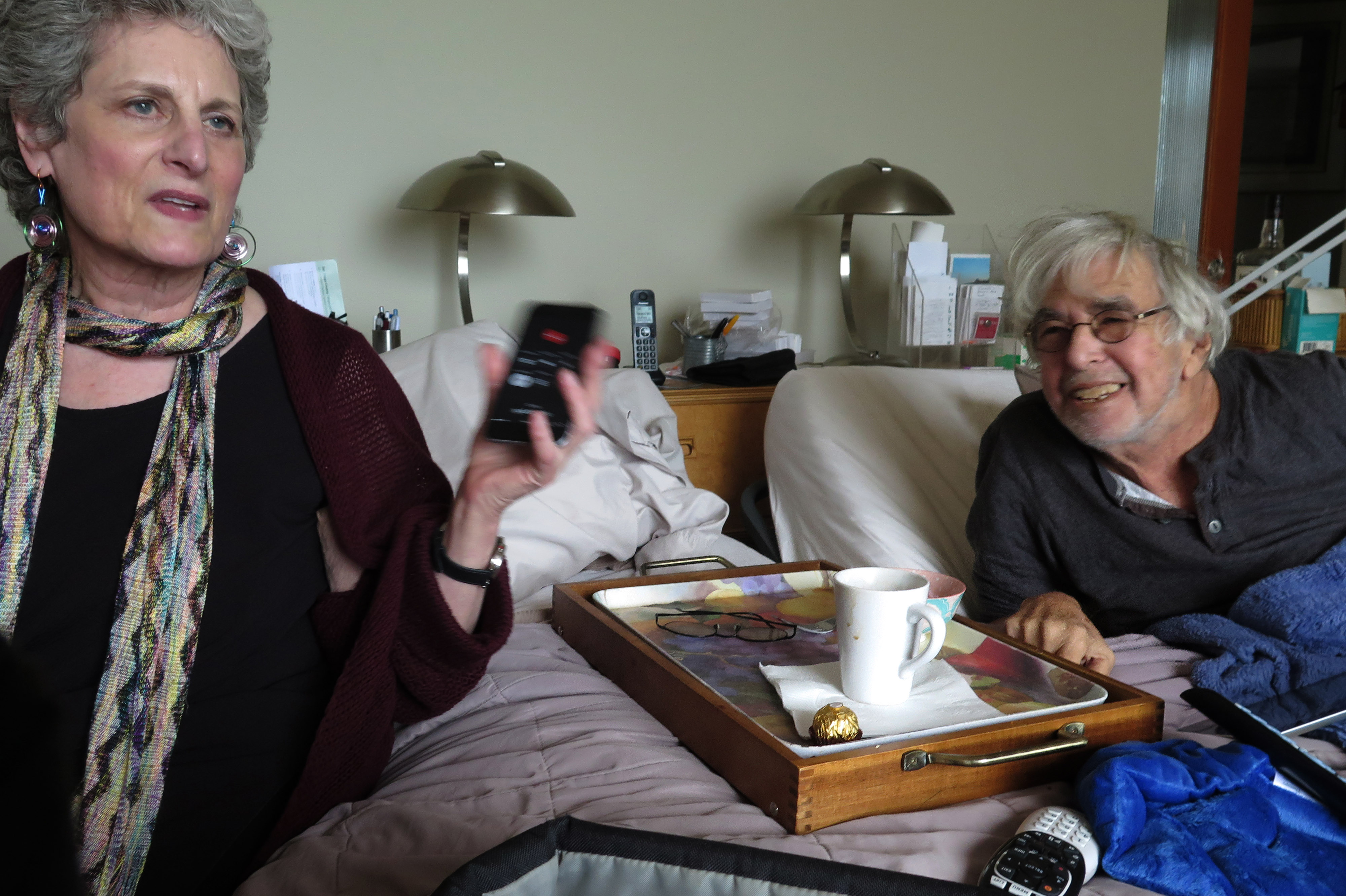 ![]() Stephen Stecker and Donna Polk speak with her brother Richard in Detroit via cell Phone on February 14, 2018 . |
