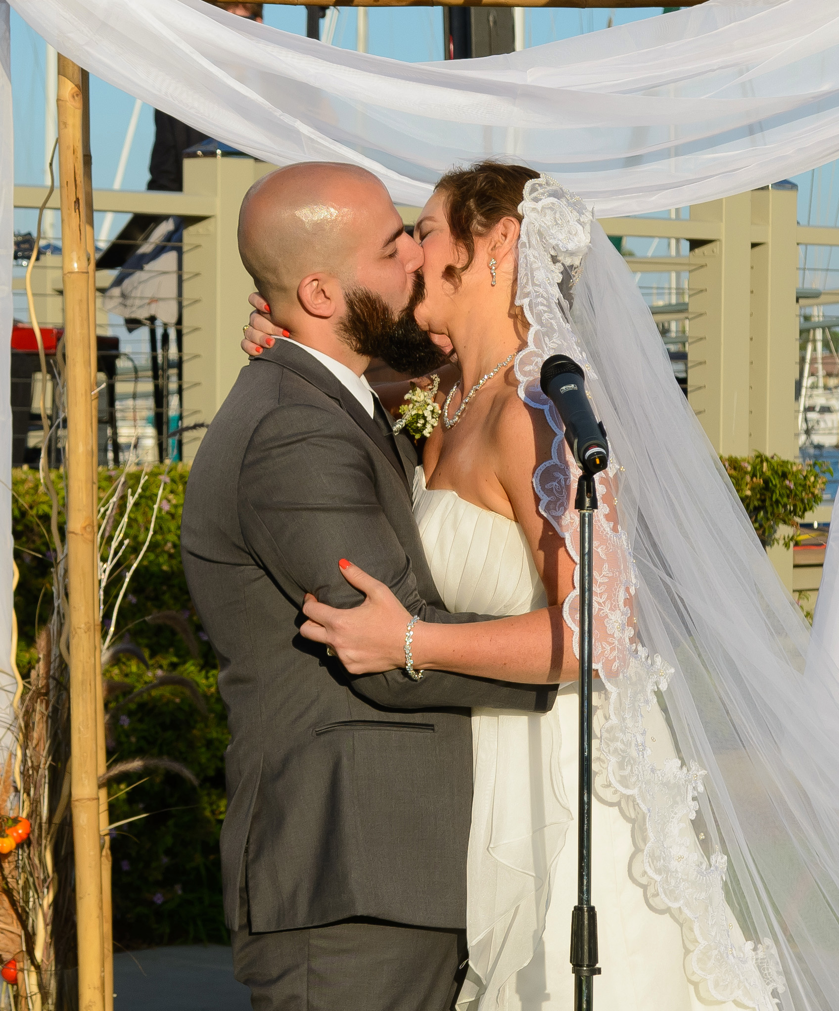 The kiss at the end of the wedding ceremony on September 10, 2016 . photo by Aaron Kirsch .