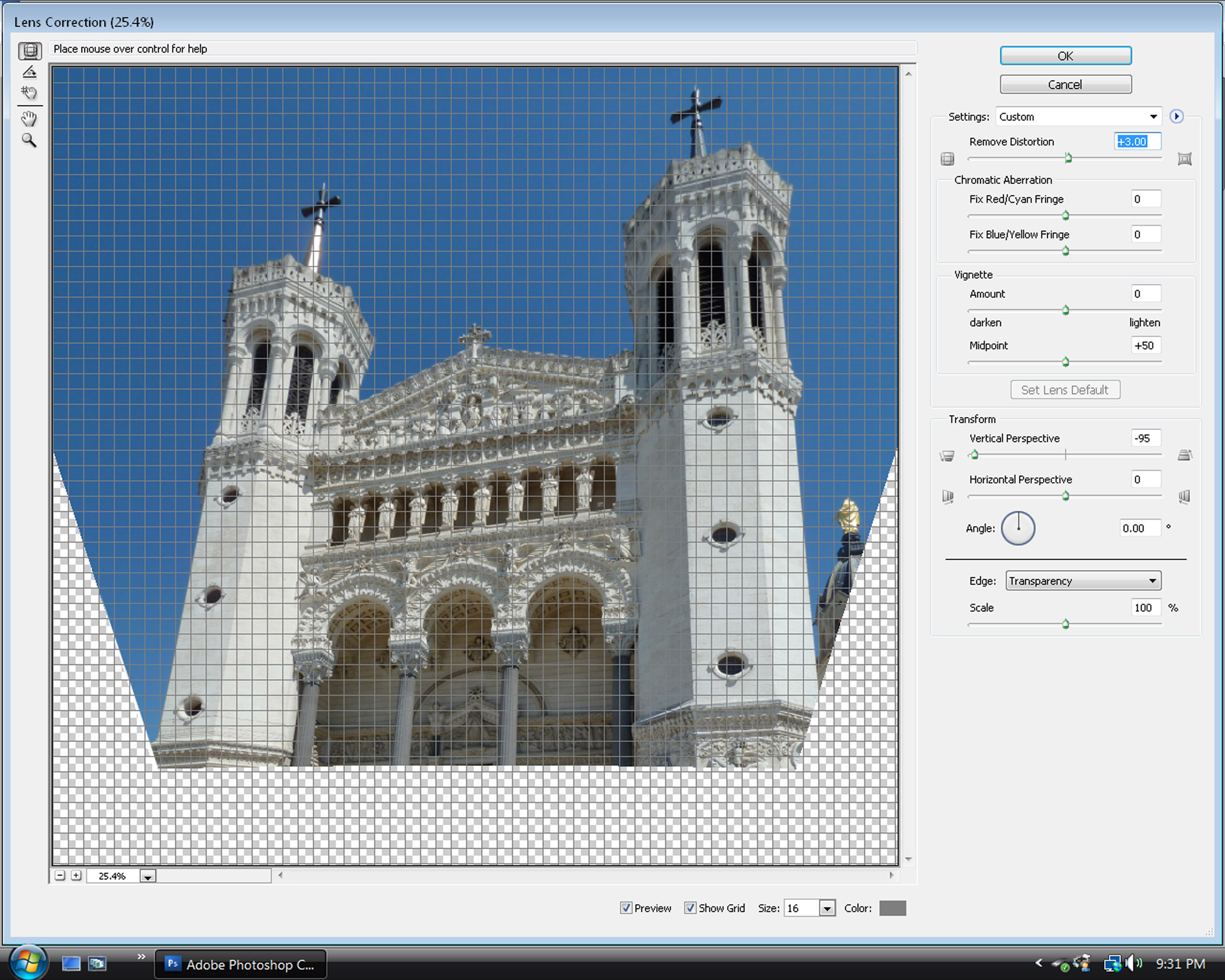 I also did a mild correction of +3.00 at the top Remove Distortion