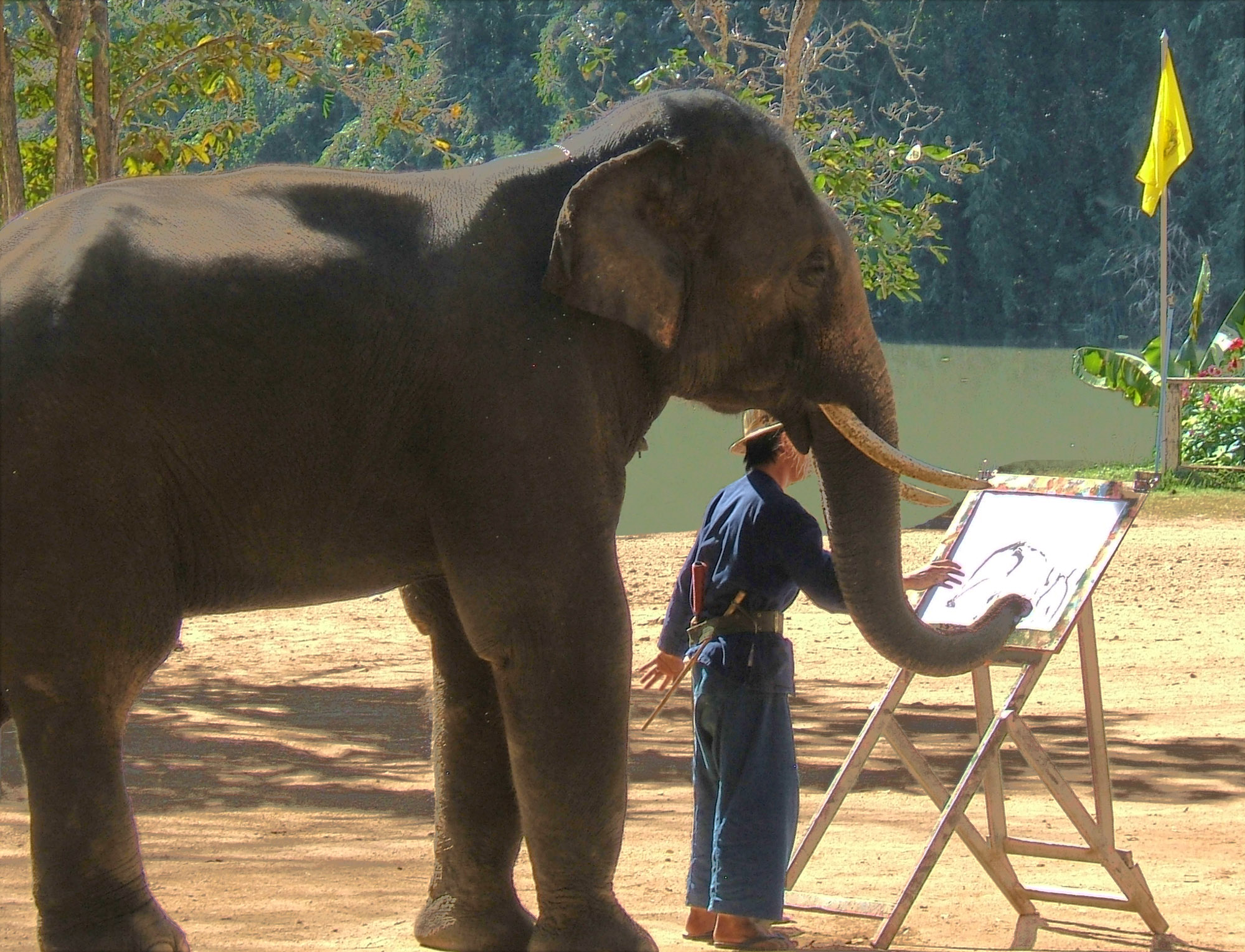 Elephant artist -- Elephant Conservation Center in Lampang, Thailand