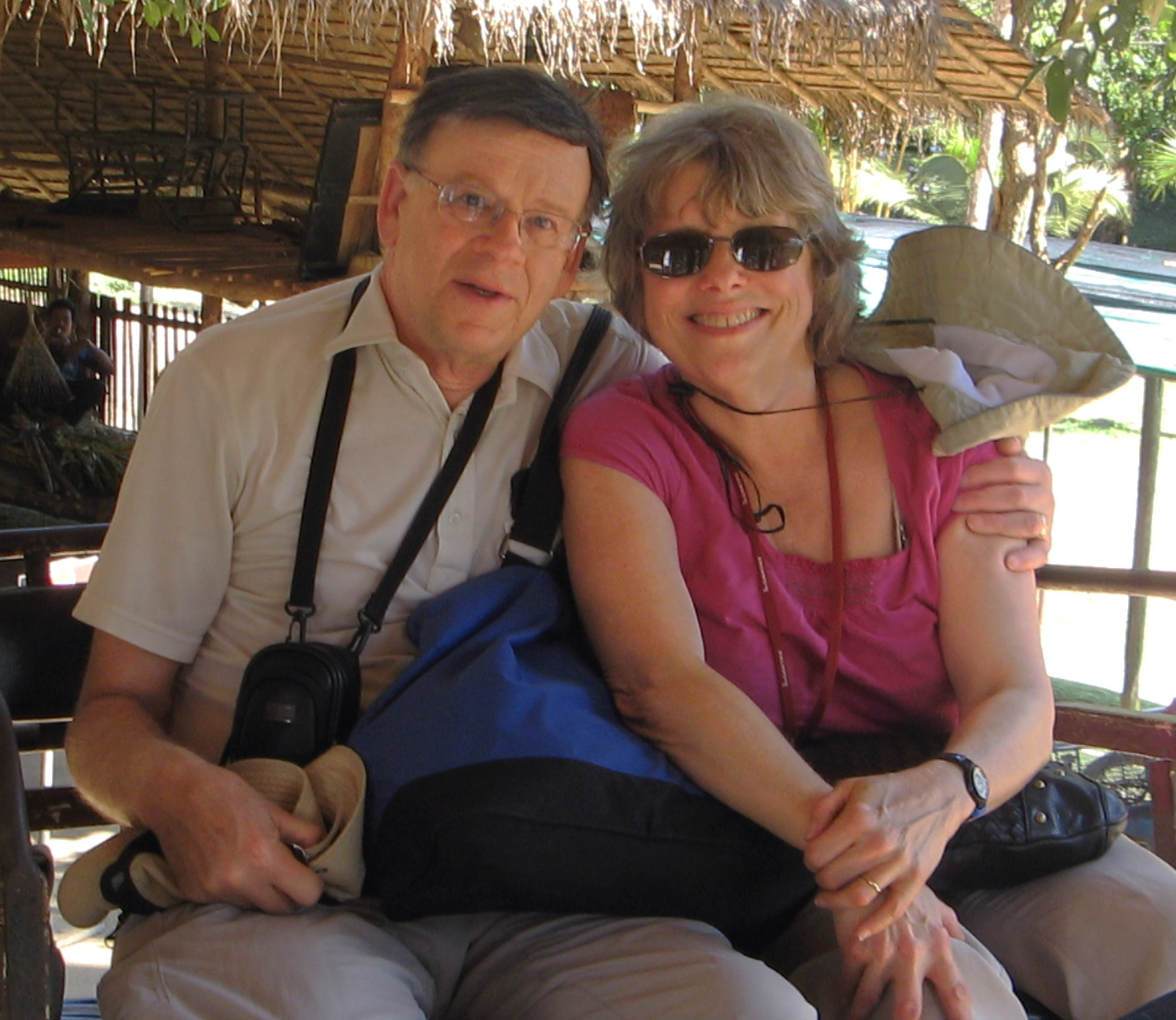 Joel and Elaine at Elephant Conservation Center in Lampang, Thailand on January 24, 2012