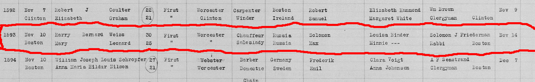 Harry Weiss and Mary Leonard/Lehner Marriage Data