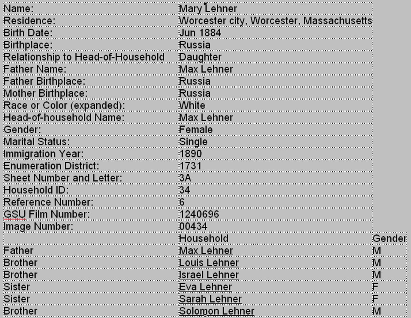 United States Census, 1900 for Mary Lehner (Leonard)