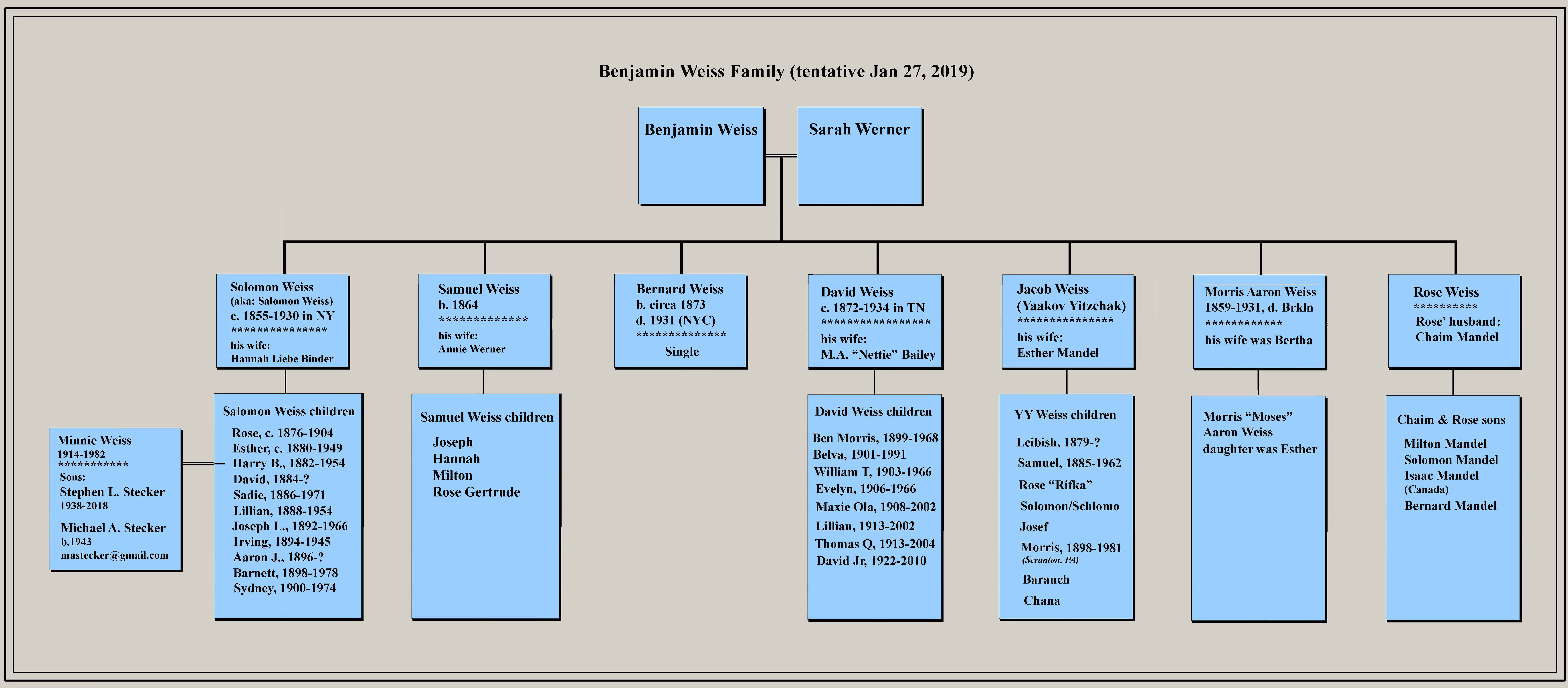 Weiss had seven children -- David Weiss of Tennessee, his 5 brothers