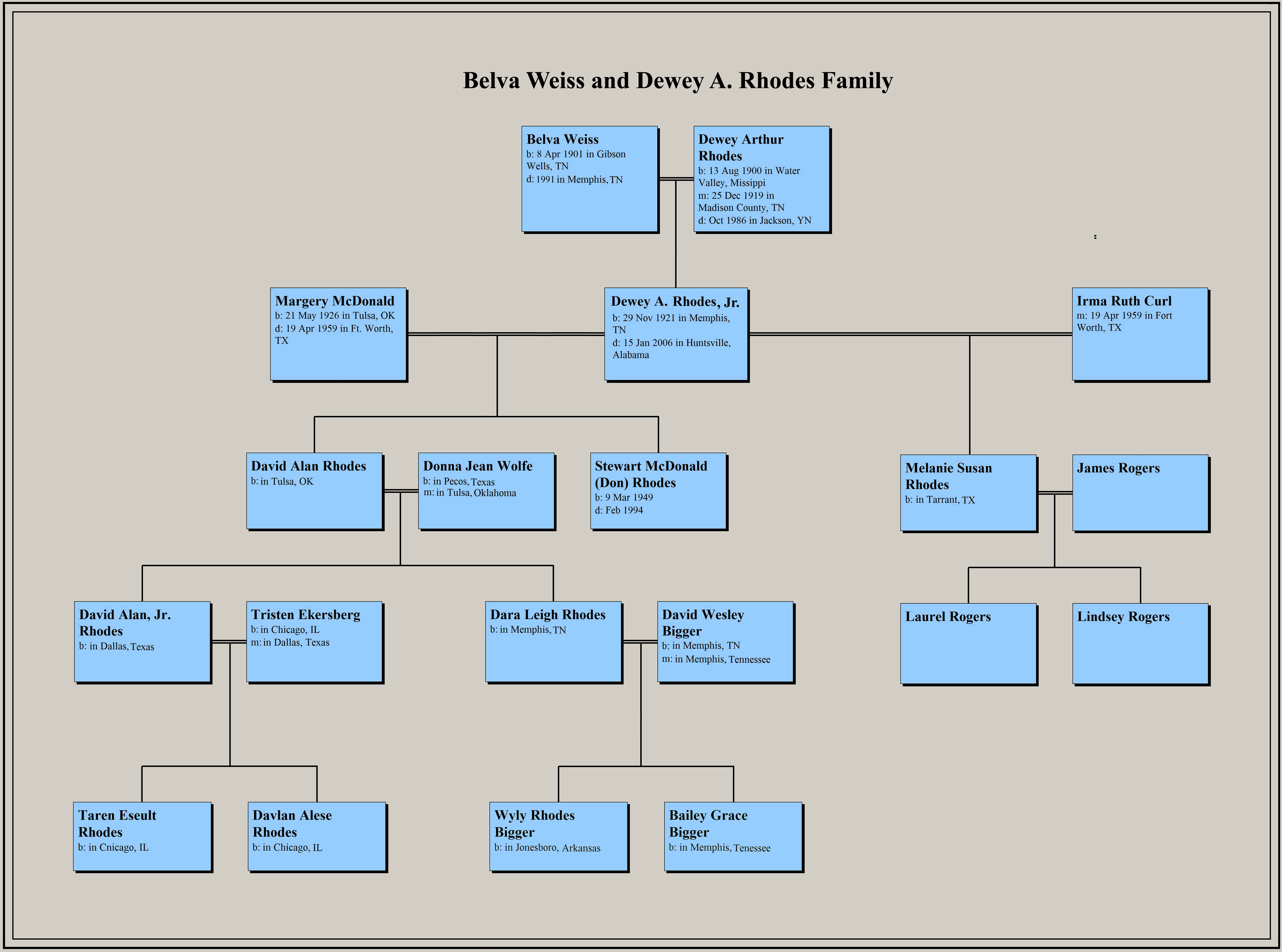 Descendants of Belva Weiss and Dewey Rhodes, Sr.