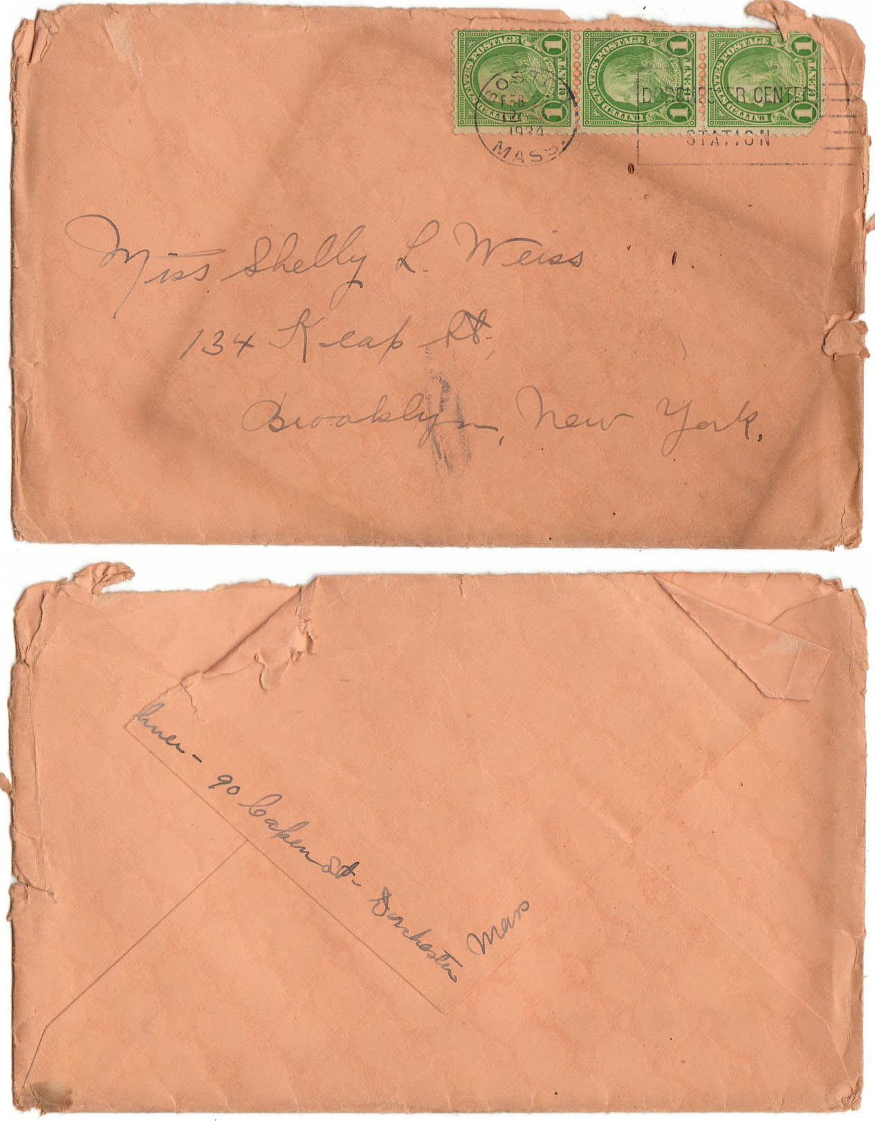 adressed to Shelly L. Weiss (aka: Minnie Weiss) of Brooklyn, NY.