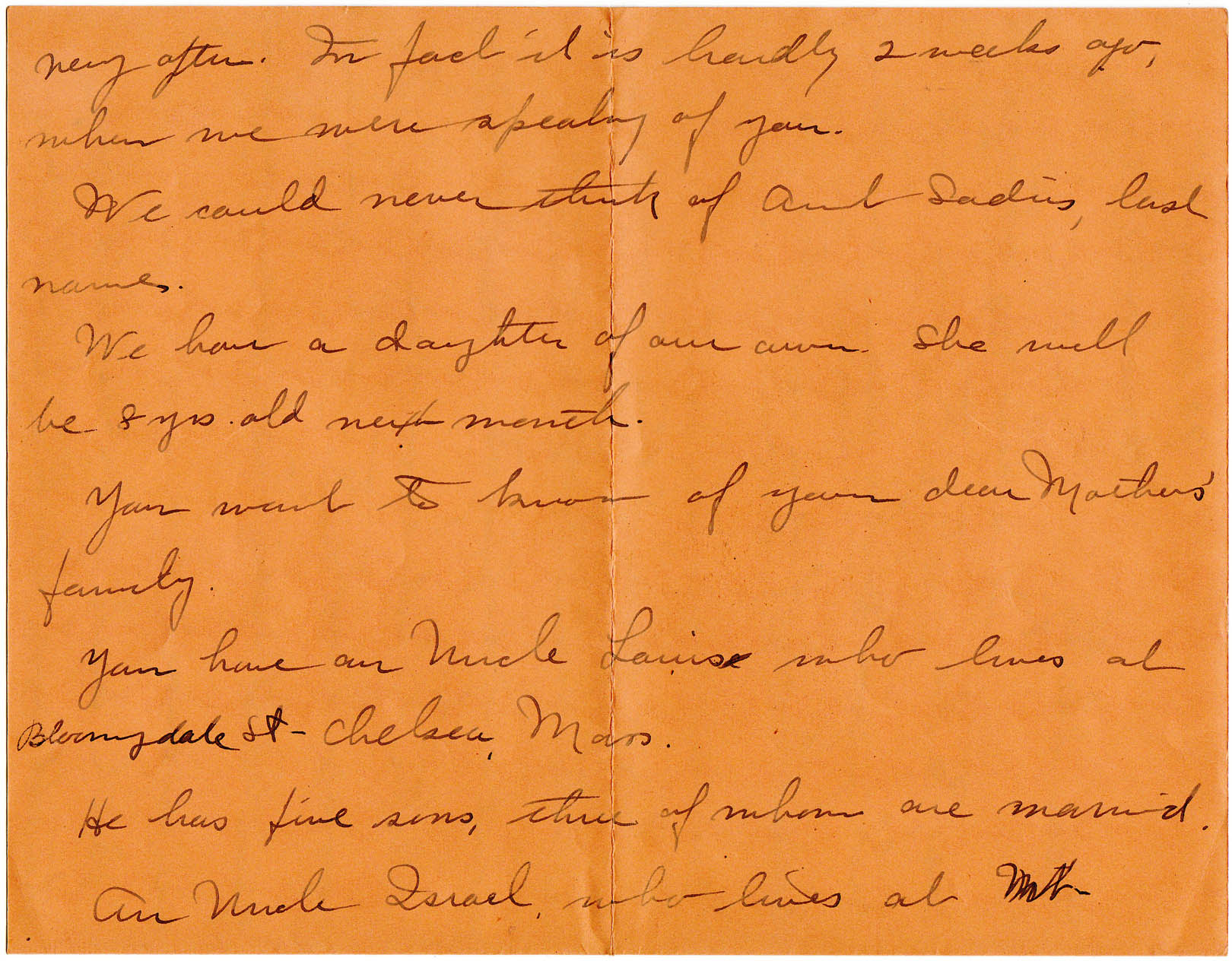 Dorchester, Massachusetts (postmark date not completely seen) was written