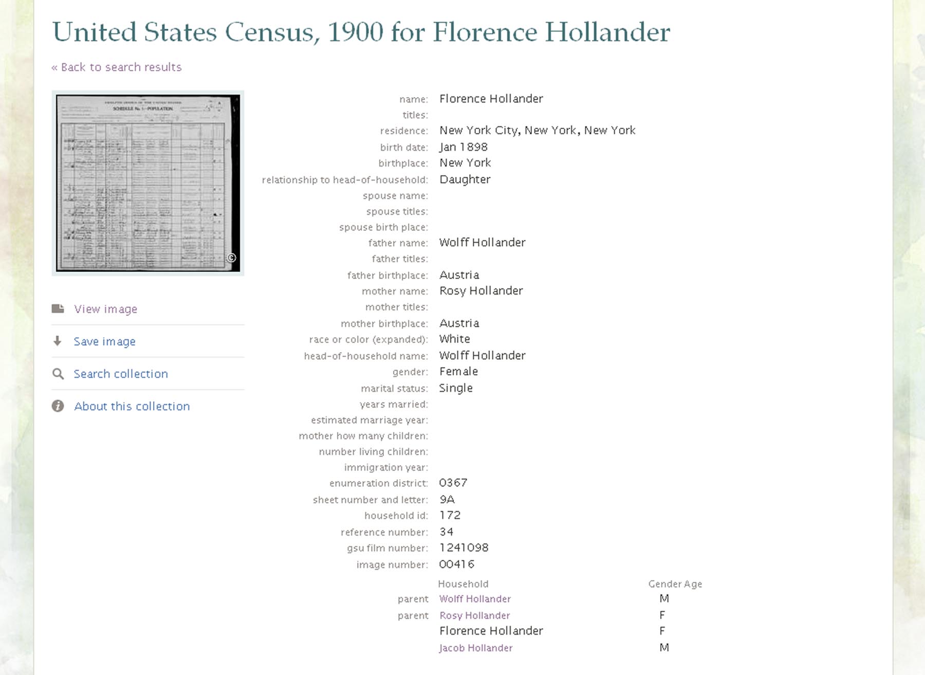 and Wolff Hollander. She was born January, 1898 in New York, NY. Married Arthur Winter, with children. |