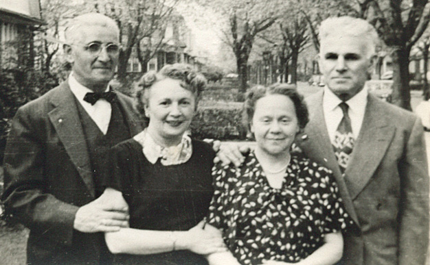 ![]() from left to right: Barney Weiss, his wife Sarah Schnieder Weiss, Estelle Peaceman Weiss, her husband Sidney Weiss |