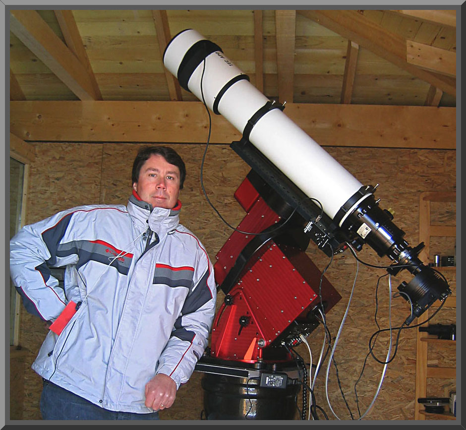 My interest in astronomy started in Christmas 1999 with an unexpected gift from my wife Isabelle -- a pair of 10/50 binoculars. After some observations of the moon and satellites and following some research on the Internet I decided to invest in the purchase of a Celestron C-8 telescope. In September, 2000 I began my first observations of the moon and planets with a quickcam v and an old computer and in June 2001 I bought a Skysensor 2000 PC and that was...... laaaaaaaaaaaa revelation: the sky was now prooooooooooooofondly revealed. In 2002 serious deep sky imaging started with the purchase of my first true CCD camera -- an Audine kaf401e. The step was crossed and a passion for astrophotography was born and has not ceased growing. In August 2002, I bought a Meade LX200 12-inch SCT and an SBIG ST9E camera. This was followed by Takahashi FS102 and TEC140 (980mm focal length) apo refractors, Nikon 300 and 180mm f/ 2.8 telephoto lenses, a SBIG ST10XME CCD camera and a Paramount ME 4000 german equatorial mount. I have recently completed building a permanent home observatory. Areas of interest