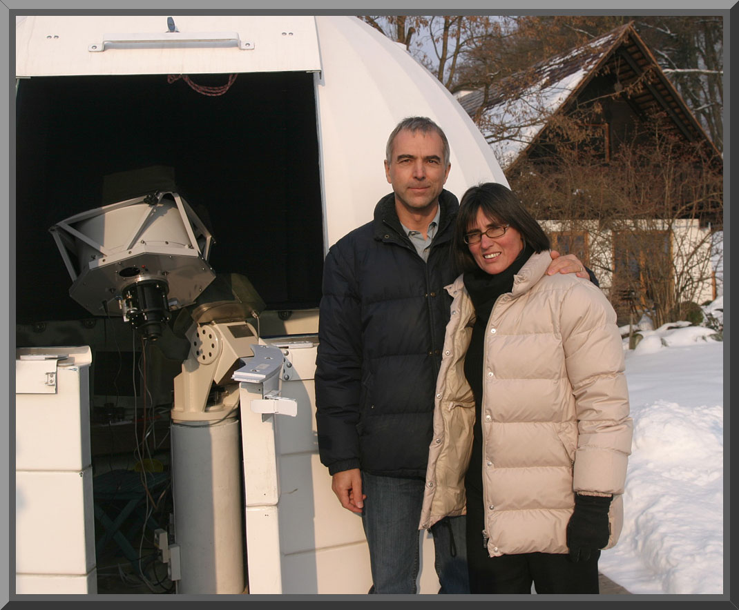 My astronomical life started in 1997 with a simple Tasco reflector, a gift for my second son. He soon lost interest in the scope, so I tried it out and and began to explore the Moon and the Planets. Because of the need for higher magnification I soon upgraded to the Meade ETX90 which made for better planetary viewing. In 1998 I joined the local astronomy club and acquired a C11 on a G11 mount. Astro-related photographic film experiments failed, but in 1999 I successfully introduced a webcam for planetary imaging and motivated other colleagues of my club to do the same. My wife Roswitha supported my new hobby fascinated from the endless variety of objects to observe and to image. To escape the painful setup installation every night I built my own 3m observatory beside my house 25 km south of Graz during summer 2000 in a semi-rural environment (mag 5 sky typical). Another big step into deep sky astrophotography was the use of a digicam, first the Nikon CP995, then replacing it 2001 with the Canon D60 and 2002 with the Canon 10D. A MX7C was used for autoguiding. My second high quality scope was a 4” f/6.5 TMB APO refractor. Ironically most times I was guiding with the C11 and imaging with the 4” refractor. I accepted the lower cost and big chip size of the Canon D-SLR with reduced efficiency, as no reasonable priced CCD cameras were available up to 2003. To overcome the low quality of these raws I tried to compensate it by long multiple exposures and tricky Photoshop processing. By doing this I was pushing the limits of digicam imaging. At the beginning of the year 2004 SBIG released the STL-11000, the first full frame CCD camera and I got one of the first models. During the year 2004 I consequently explored mainly nebulas using the wide field of my TMB. Also this year my wife and I did our first trip to Namibia, using most of the nights to image many fascinating southern targets with the TMB and the STL on my mobile setup.