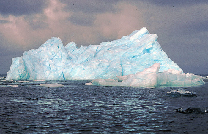 Cyan and white icebergs in Laguna San Rafael, Chile