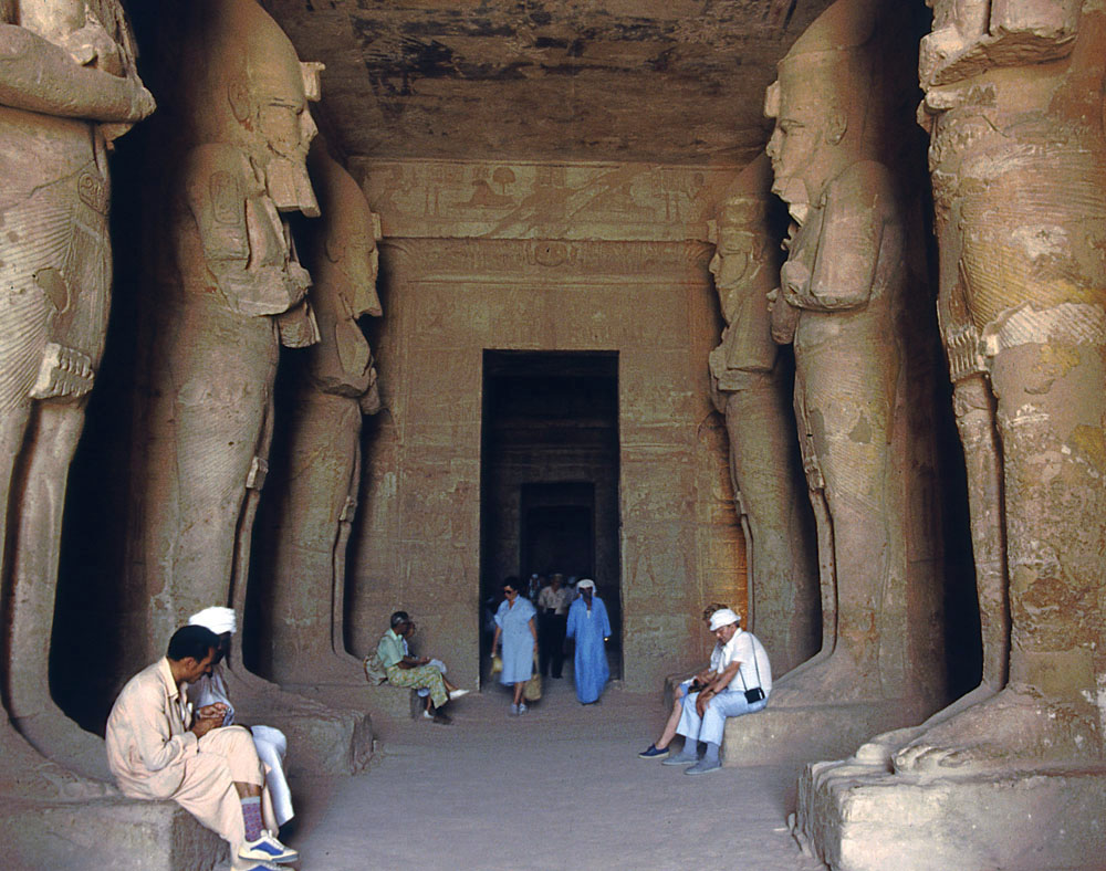Inside the Great Abu Simbel Temple is the Hypostyle Hall. Its ceiling is supported by eight columns faced with statues of Ramses II in the pose of the god Osiris.