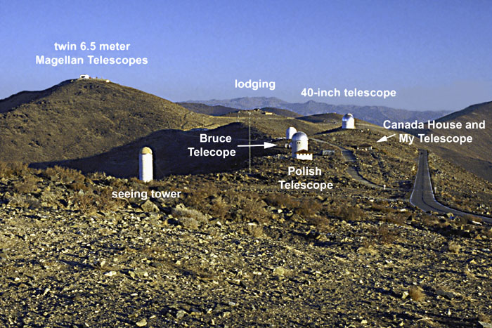 The Carnegie Institution of Washington in cooperation with the University of Arizona, Harvard University, the University of Michigan (my alma mater) and MIT, are constructing two 6.5 meter (260-inch) telescopes at Las Campanas. First light for the first telescope was in the year 2000. The second telescope came on line in 2002.  |
